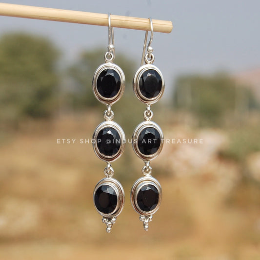 Black Onyx Long Dangle Earrings