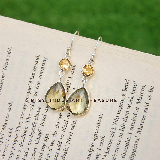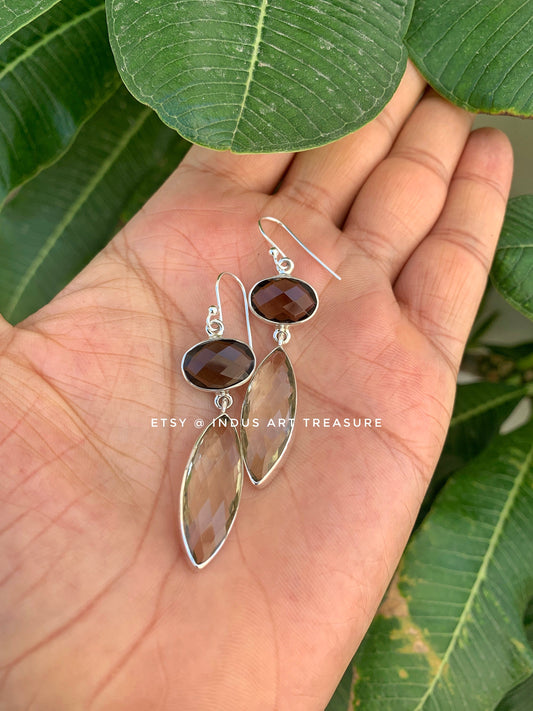 Smoky Quartz -Lemon Quartz Dangle Earrings