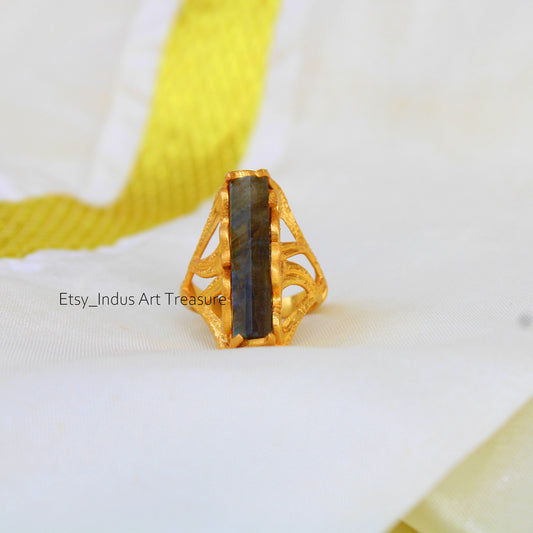 Raw Apatite- Pink Tourmaline 18k Gold Plated Ring
