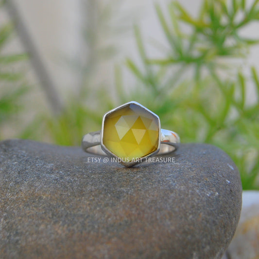 Yellow Onyx Dainty Silver Ring