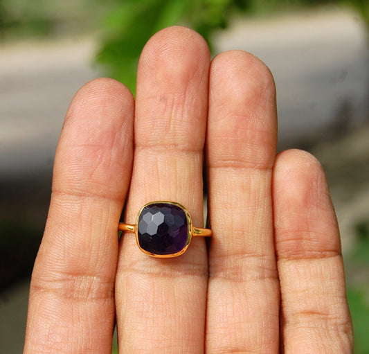 Yellow Citrine Triangle 18k Gold Plated Ring