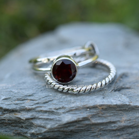 Red Garnet Stacking Ring Set