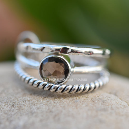 Smoky Quartz Stacking Ring Set