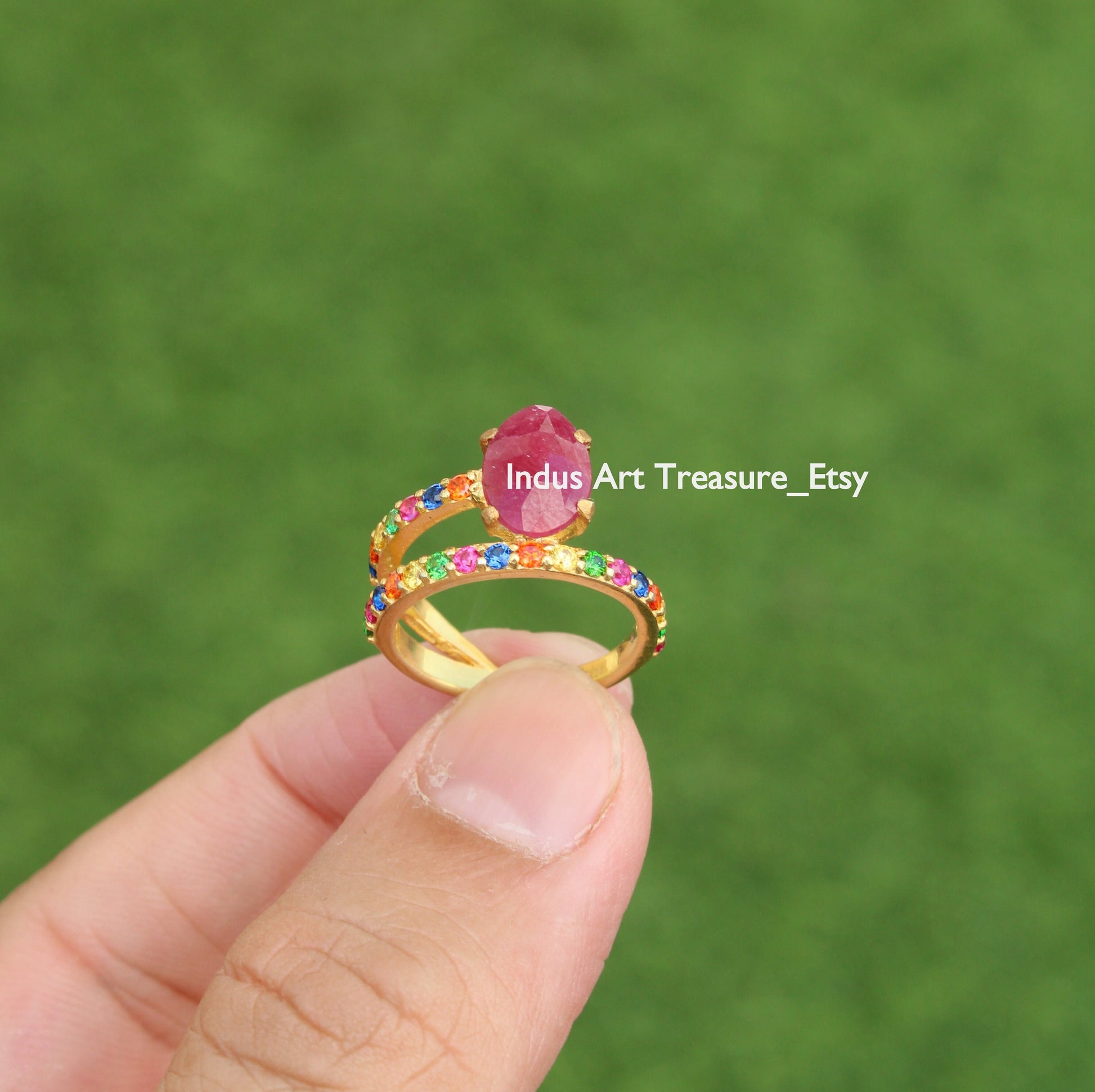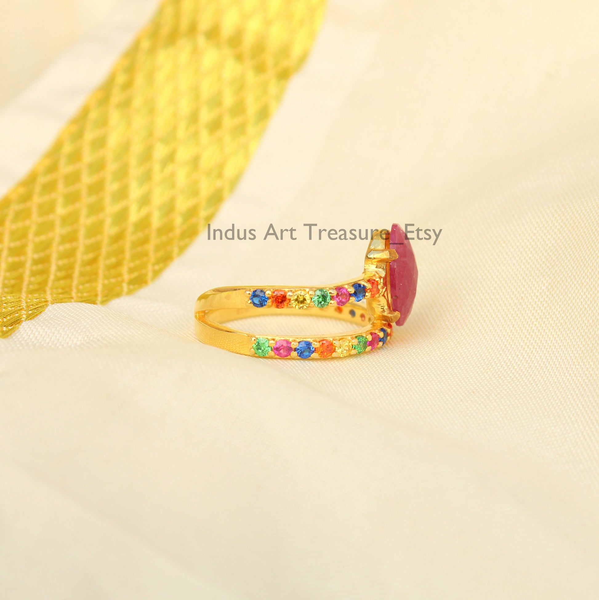 Product : Natural Ruby Multi Stone Dainty Gold Ring for Special One/ July Birthstone Ring / Gold Plated 925 Sterling Silver Ring/ Bridal Ring for Her/ Fine Stone Jewelry for Special Occasion / Multi Stone Rainbow Ring, Birthday Gift for Her/ Gift Ring for Mum/ Anniversary Gift for Her.