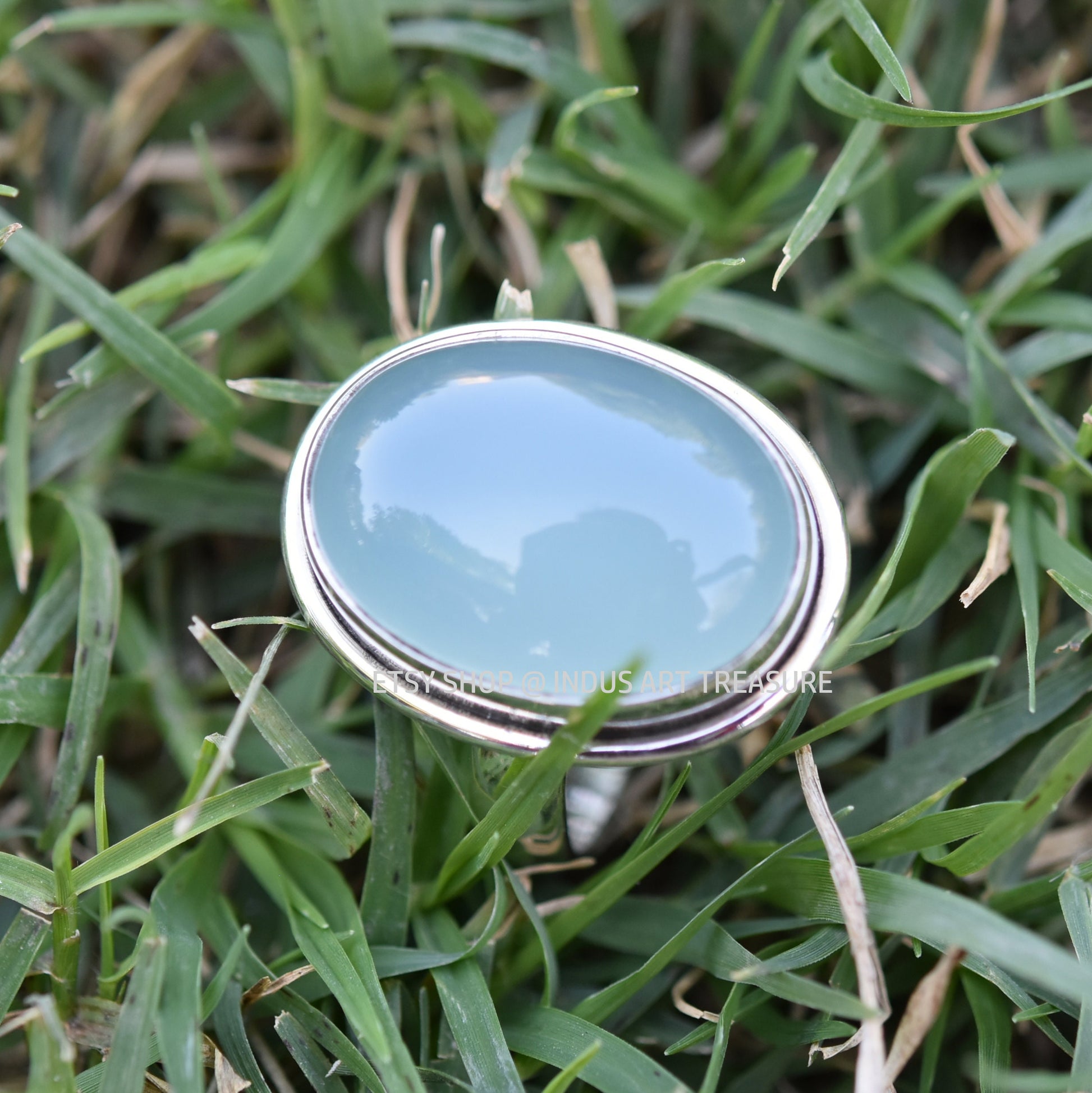 Product : Aqua Chalcedony Silver Ring, 925 Sterling Silver Ring, Blue Gemstone Ring, Anniversary Gift for Her, Handmade Silver Ring, March Birthstone Ring.