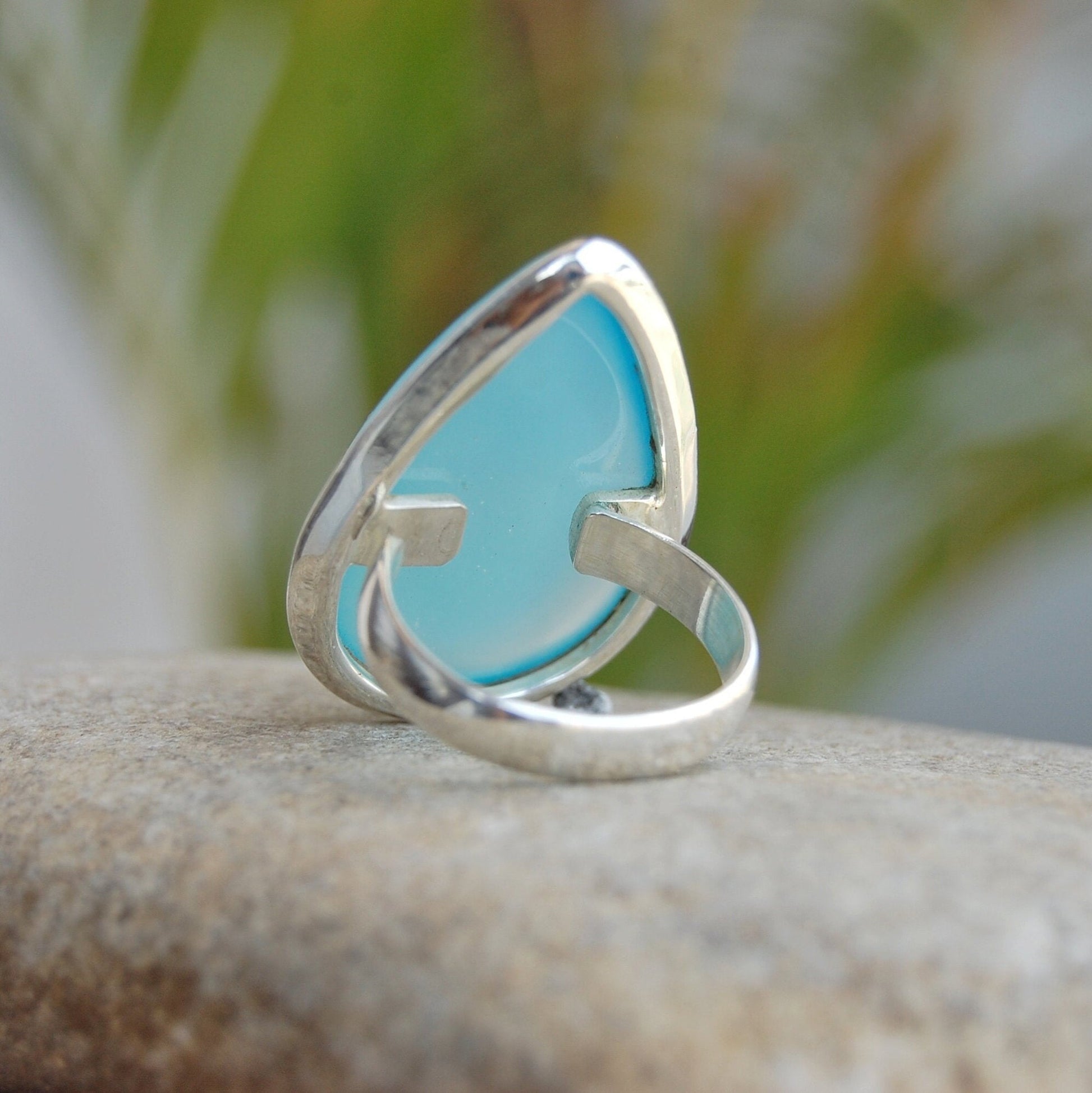 Product : Natural Aqua Chalcedony Handmade Adjustable Statement Ring/ 925 Sterling Silver Ring/ October Birthstone/ Blue Gemstone Ring/ Aqua Chalcedony Ring/ Gift for Her.