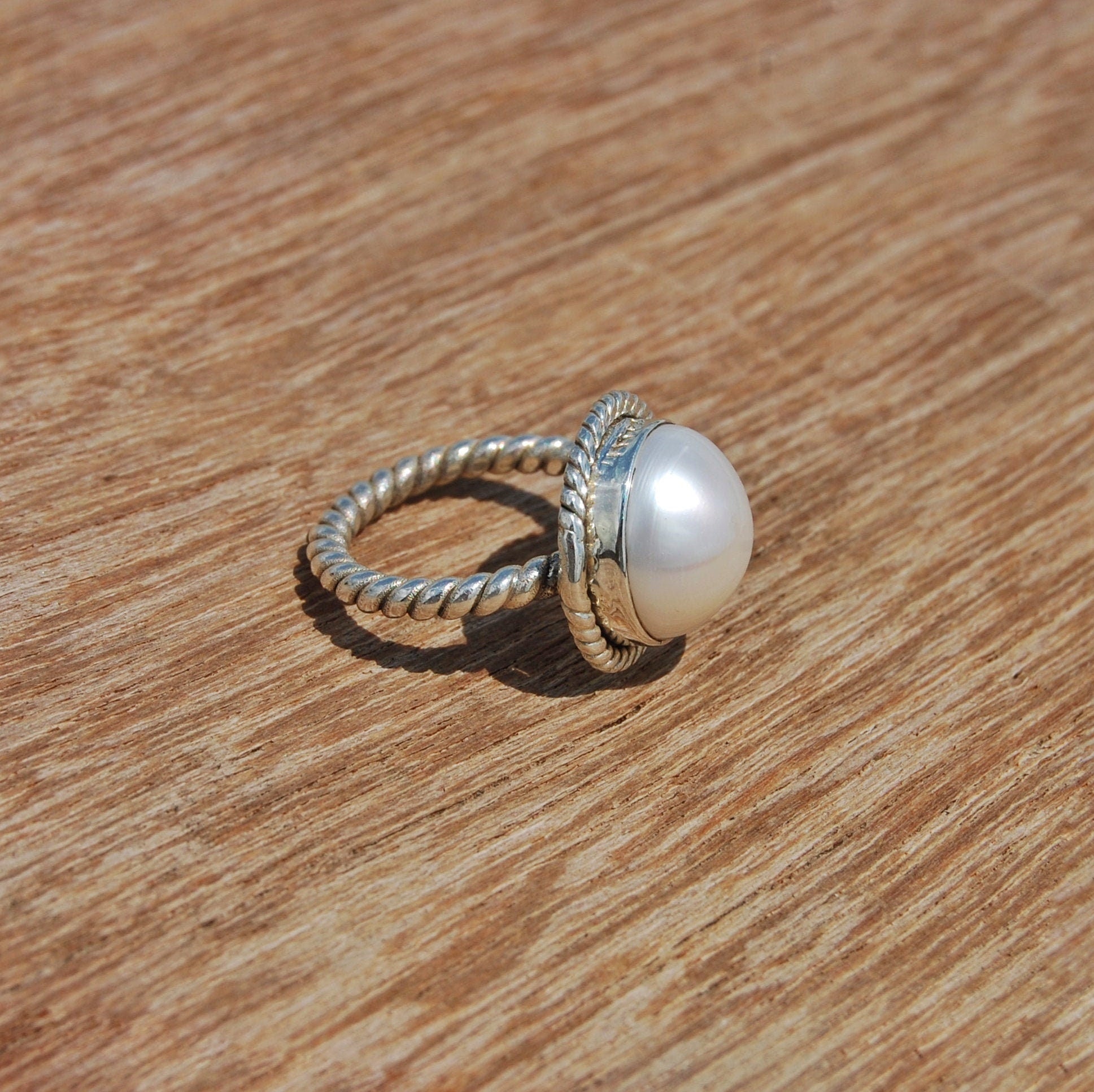 Product : Natural White Pearl Twisted Wire Band Handmade Cocktail Ring.