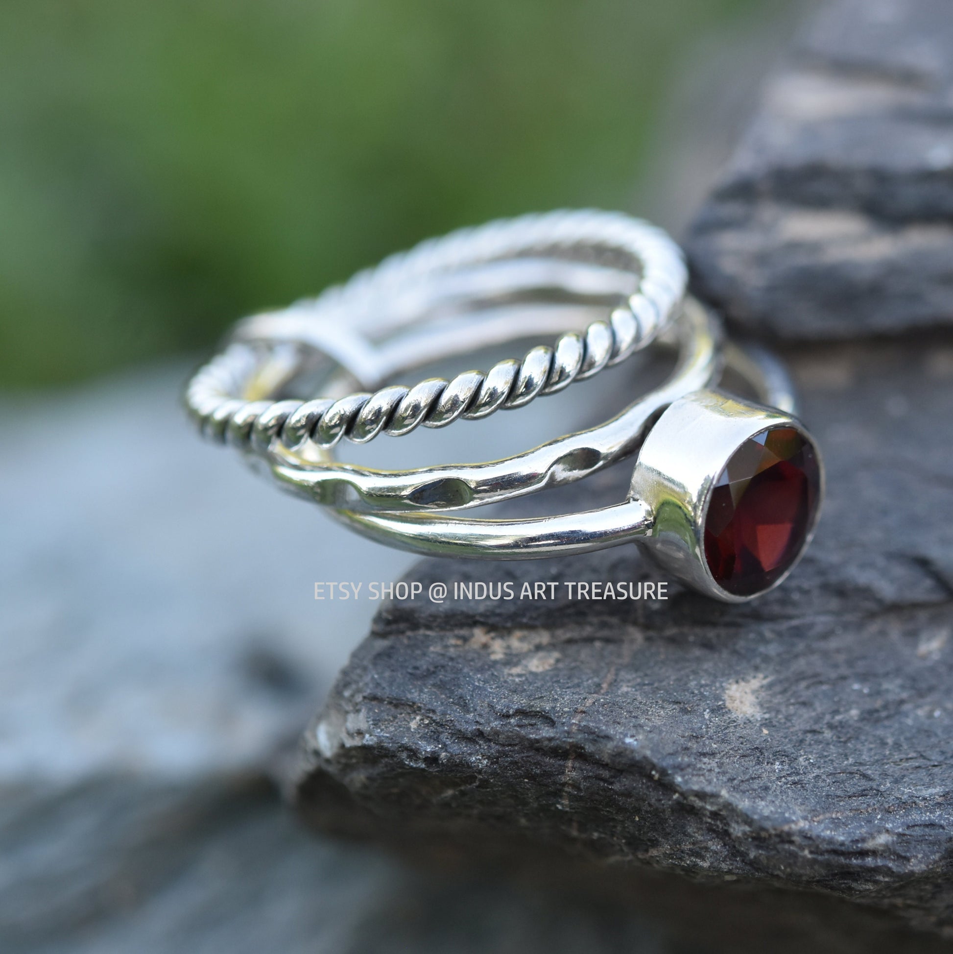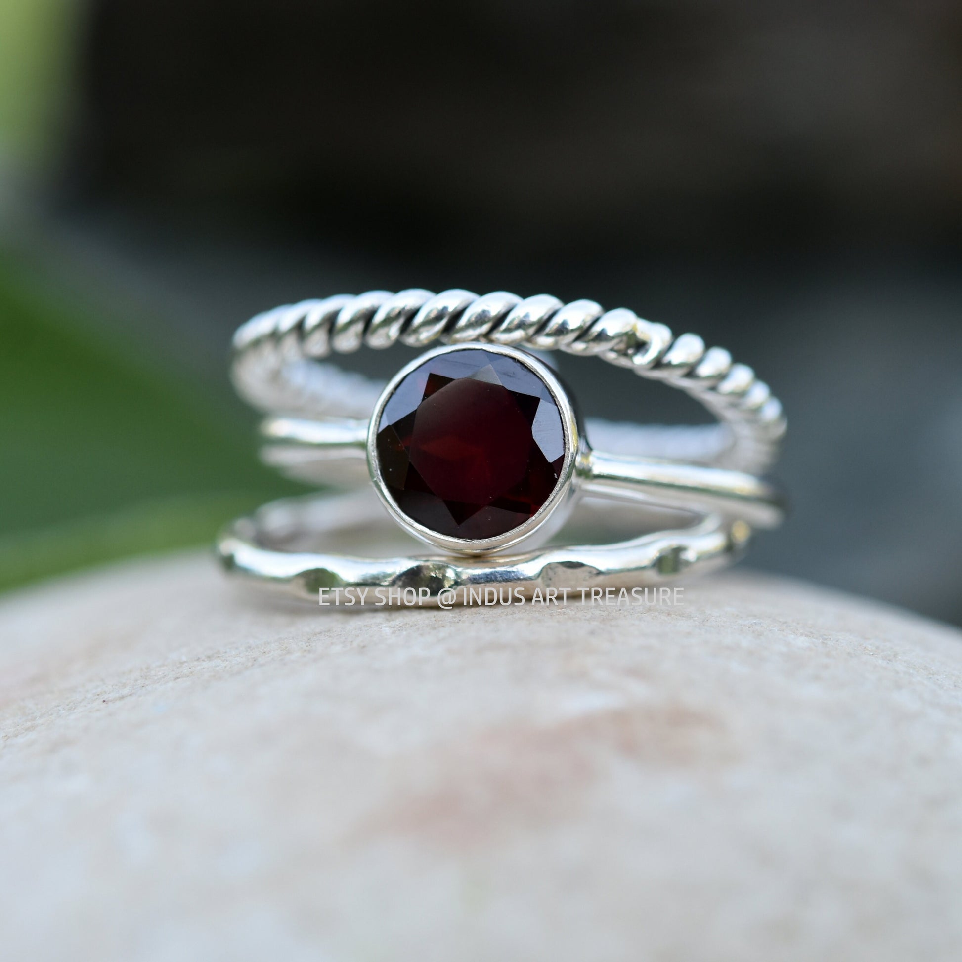 Material : 925 Sterling Silver & Natural Red Garnet .