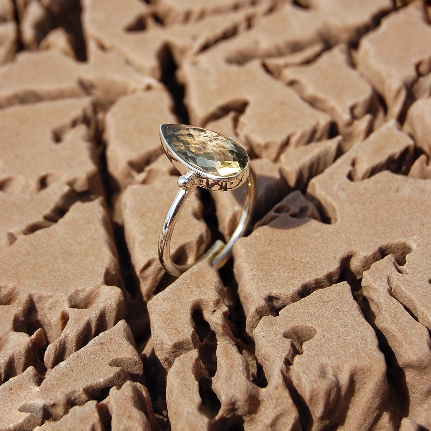 Product : Elegant Yellow Citrine Pear Checker Cut Designer Adjustable Ring