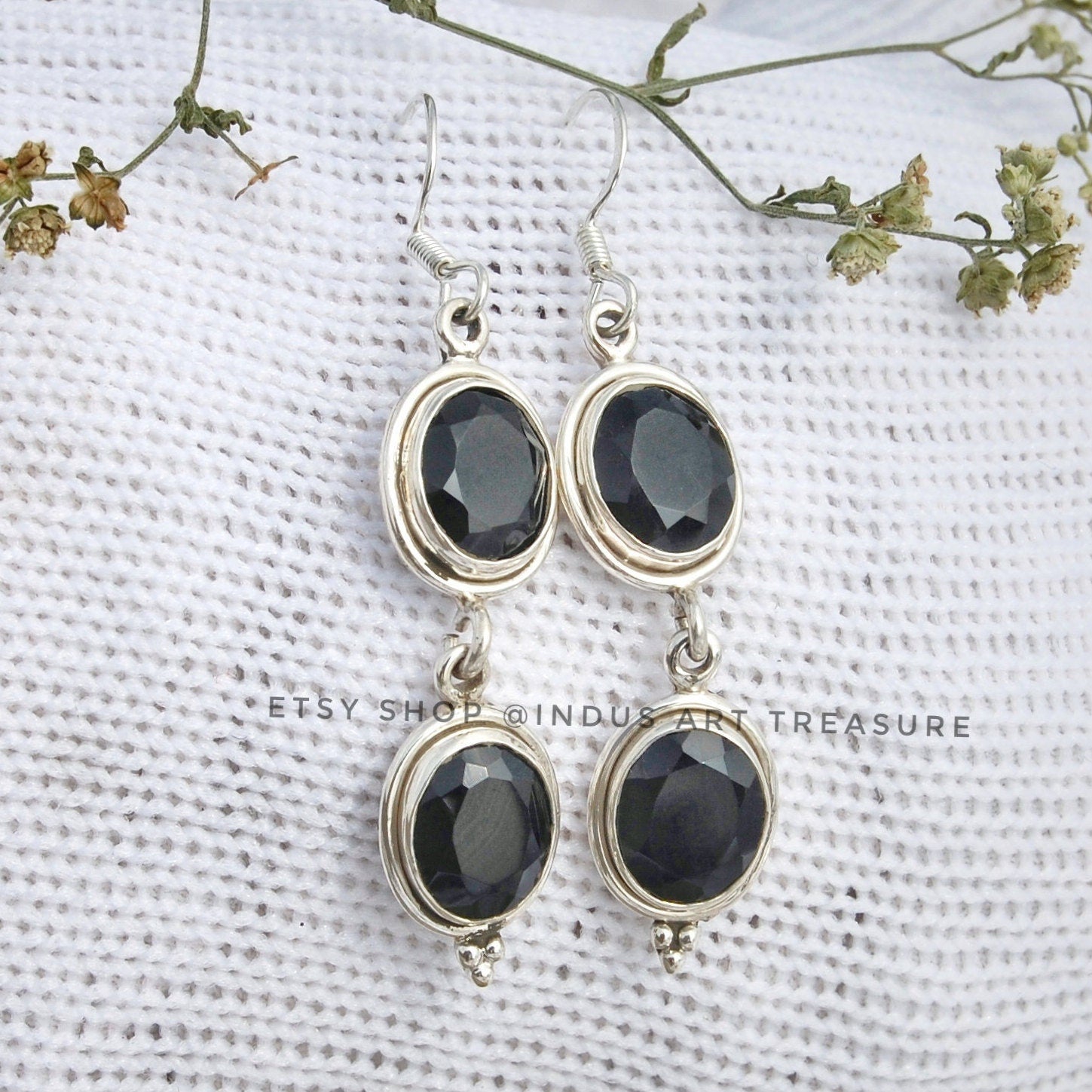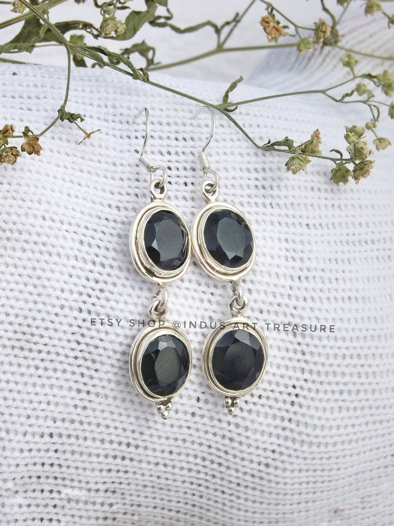 Product : Black Onyx Oval Cut Earrings