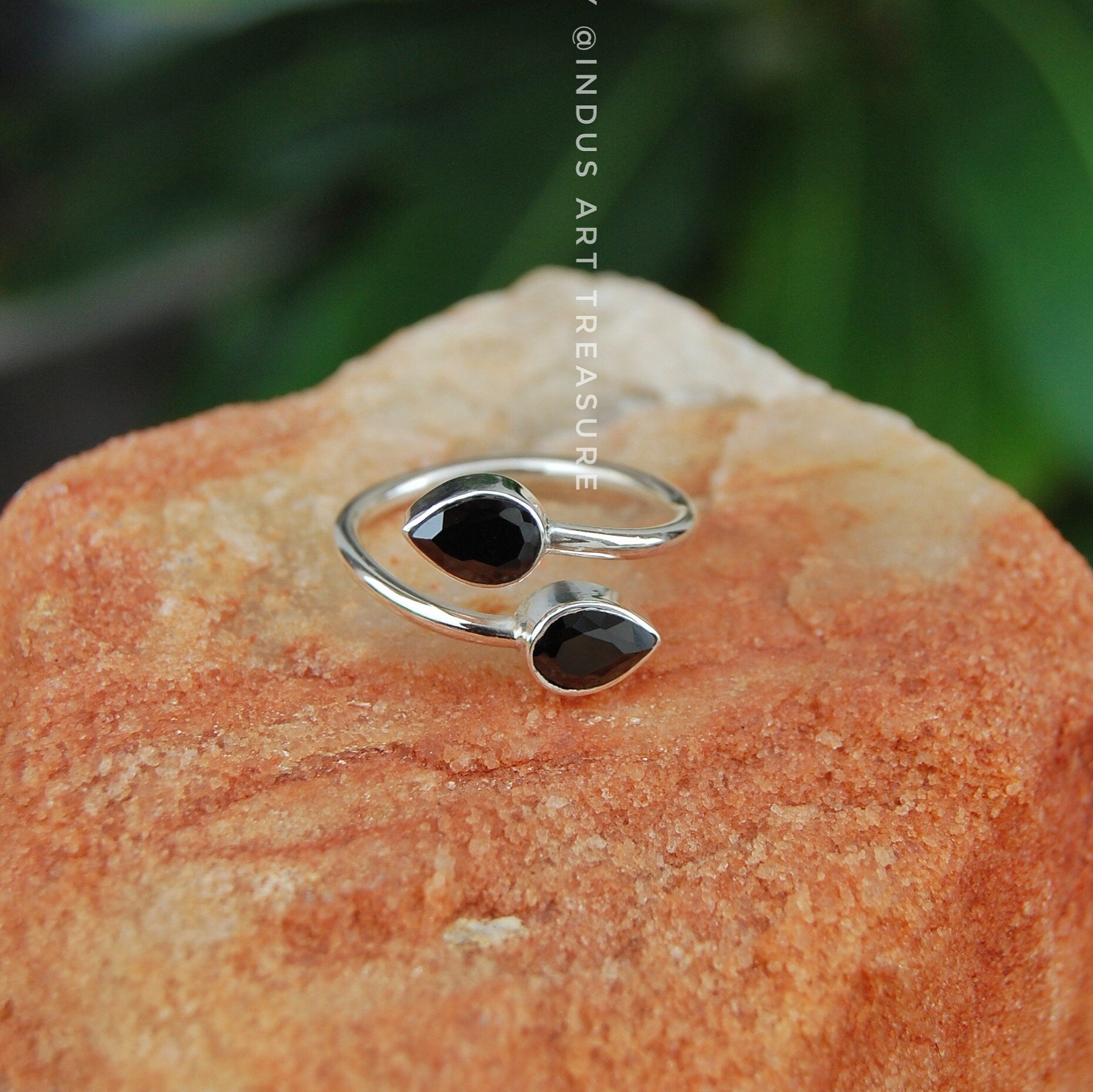 Product : Natural Black Onyx Dainty Leaf Ring, 925 Sterling Silver Ring, February Birthstone Ring, Black Ring, Ring for Women, Black Gemstone Ring, Gift for Her