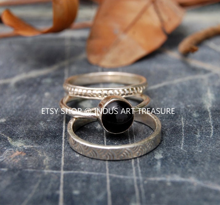 Product : Beautiful Black Onyx Handmade Stacking Ring Set, Black Onyx Ring, 925 Sterling Silver Ring, December Birthstone, Three Ring Set, Stacking Ring Set, Black Ring, Gift Ring