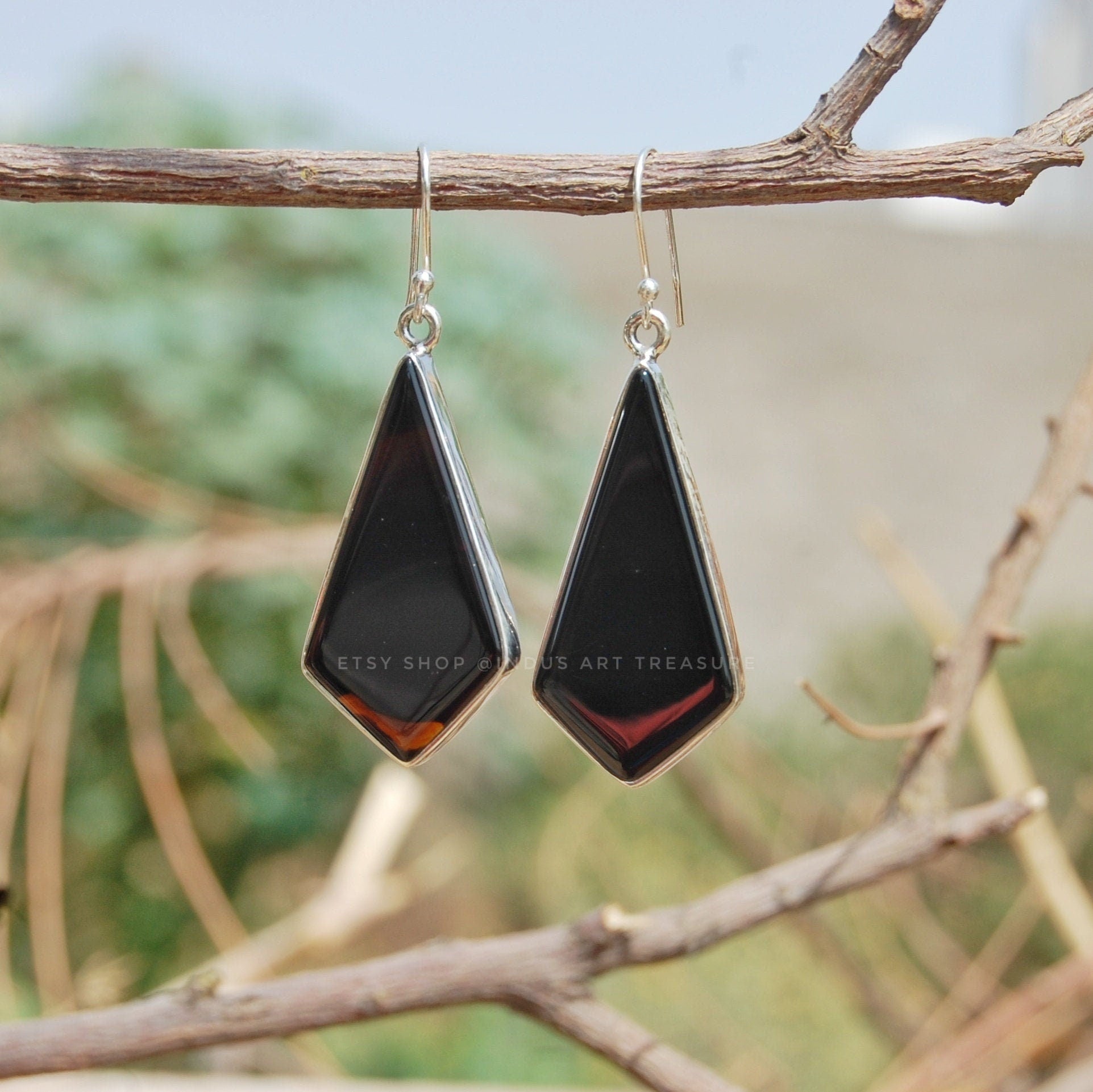 Product : Black Onyx Statement Earrings for Her, 925 Sterling Silver Earrings, December Birthstone, Long Dangle Drop Earrings, Birthday Gift for Her, Beauty of Black Onyx, Anniversary Gift for Her, Statement Earrings Jewelry.