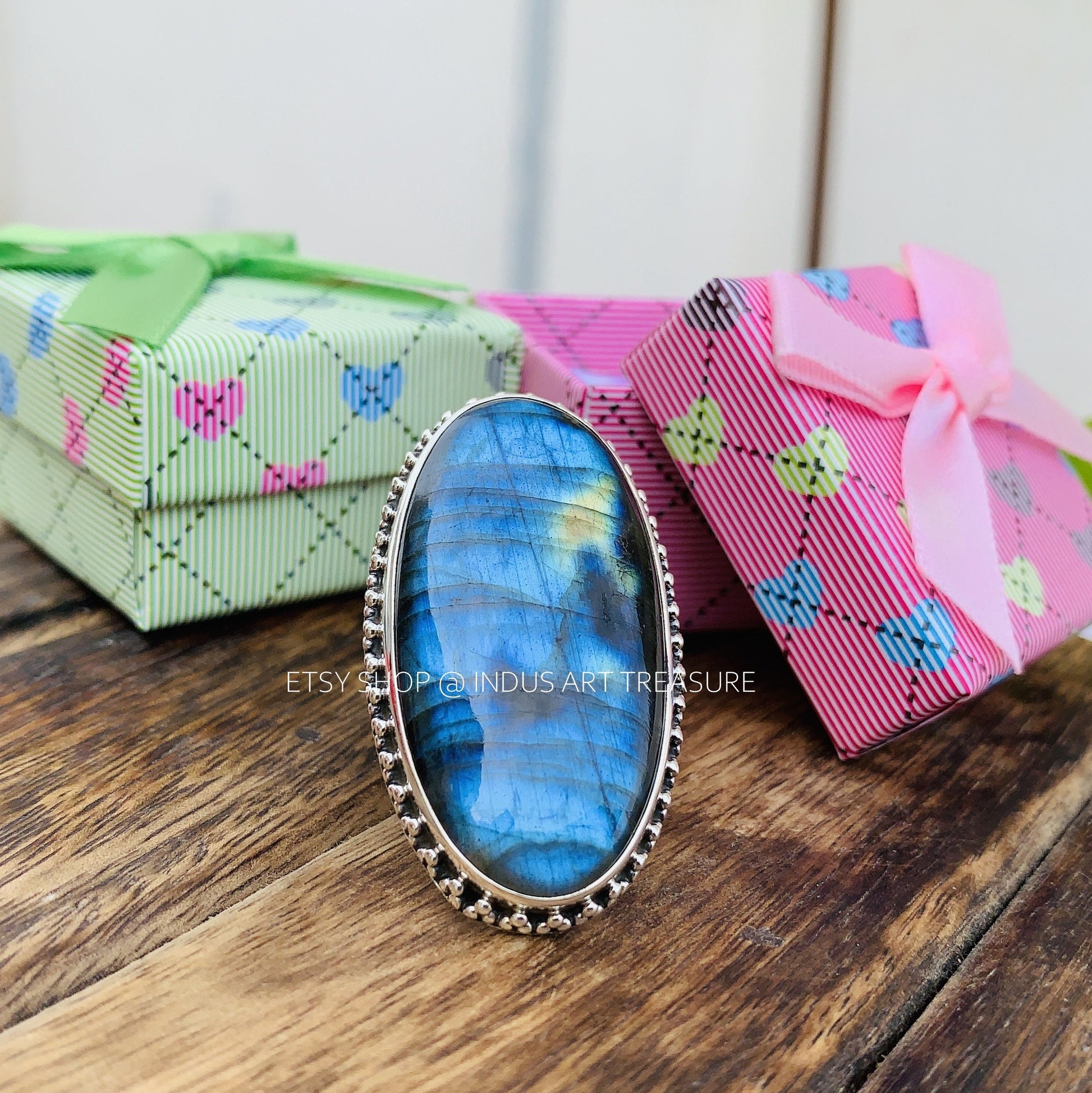 Product : Natural Blue Labradorite Statement Ring - One of a kind