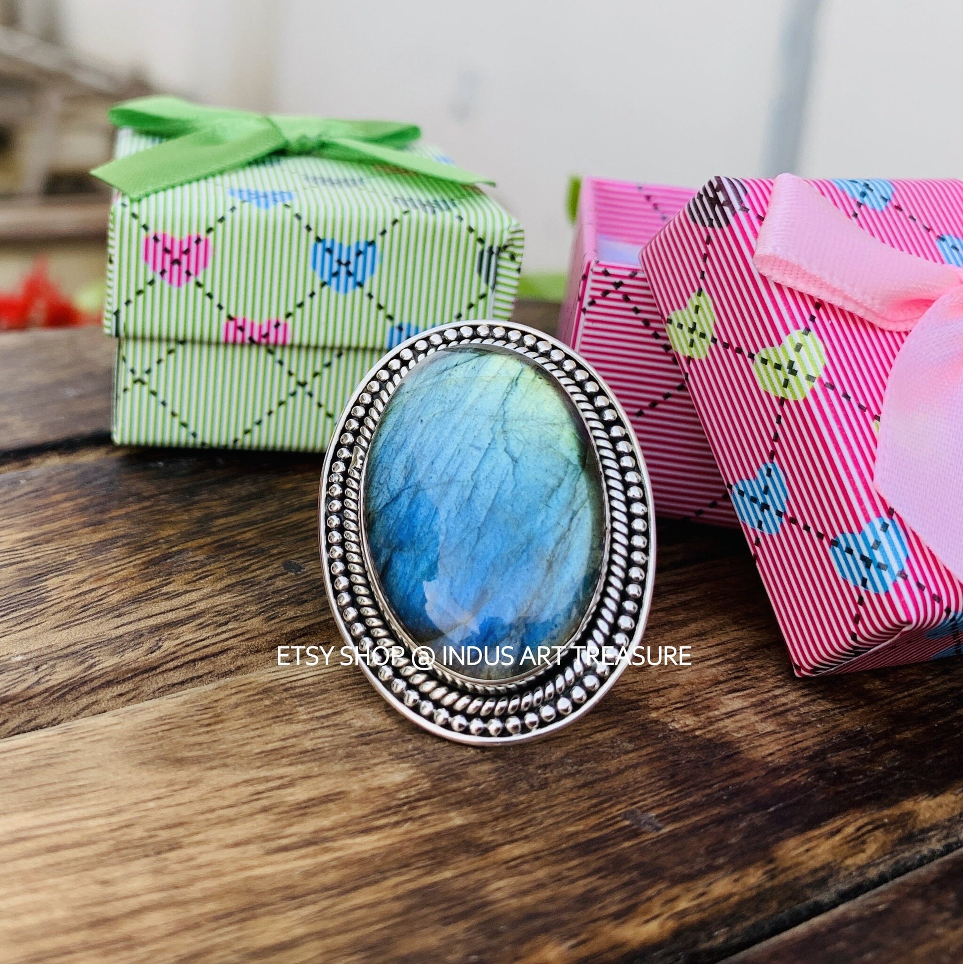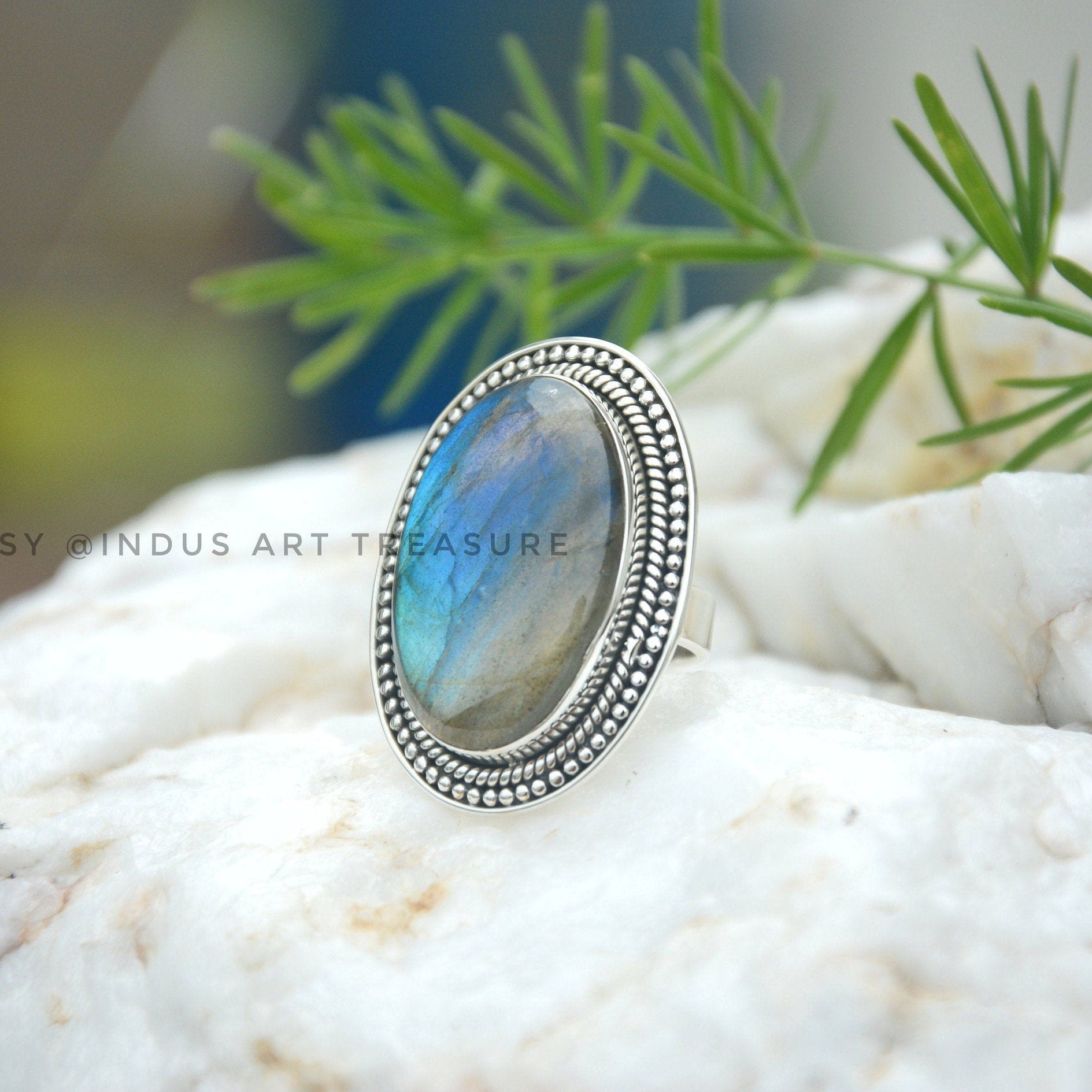 Product : Natural Blue Labradorite Statement Ring - One of a kind