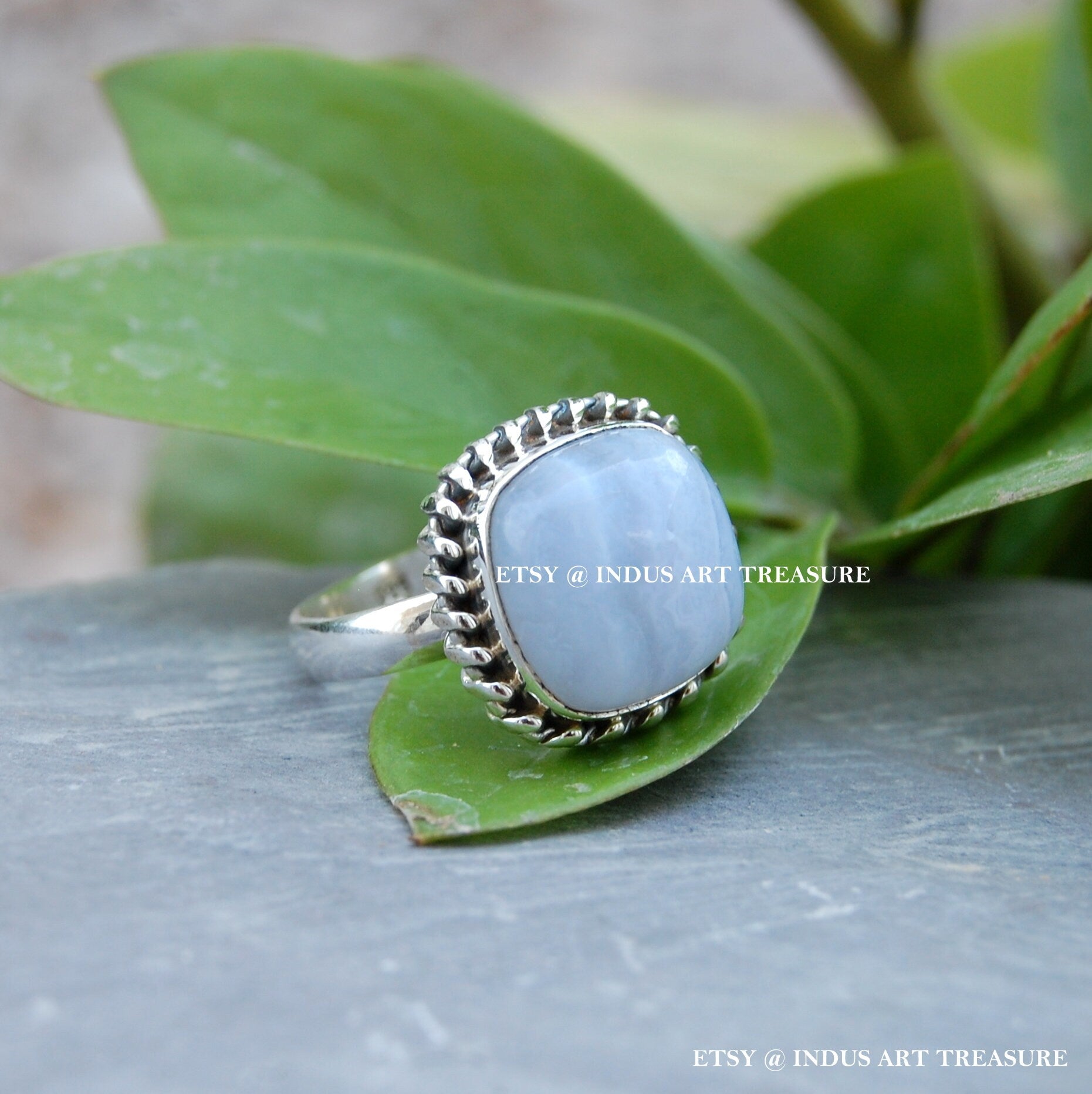 Product : Natural Blue Lace Agate Fancy Bezel Ring