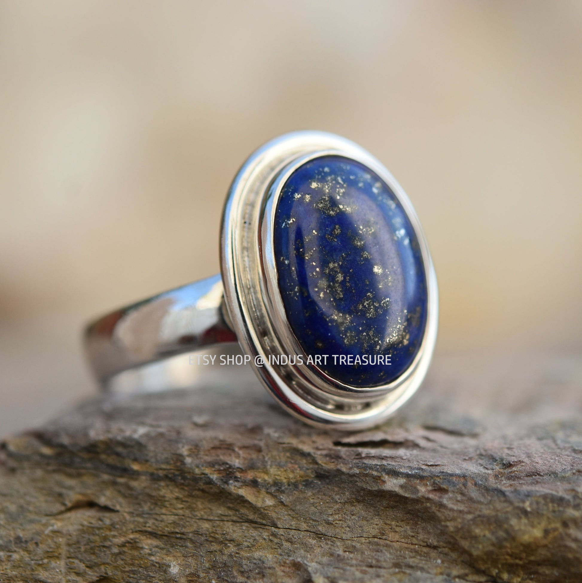 Product : Blue Lapis Lazuli Statement Ring, 925 Sterling Silver Ring, Lapis Ring, Gifts for Love, September Birthstone, Indigo Blue Stone, Unisex Ring
