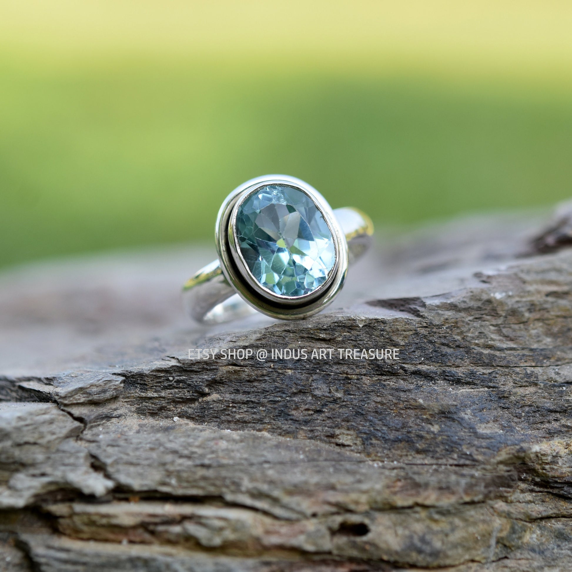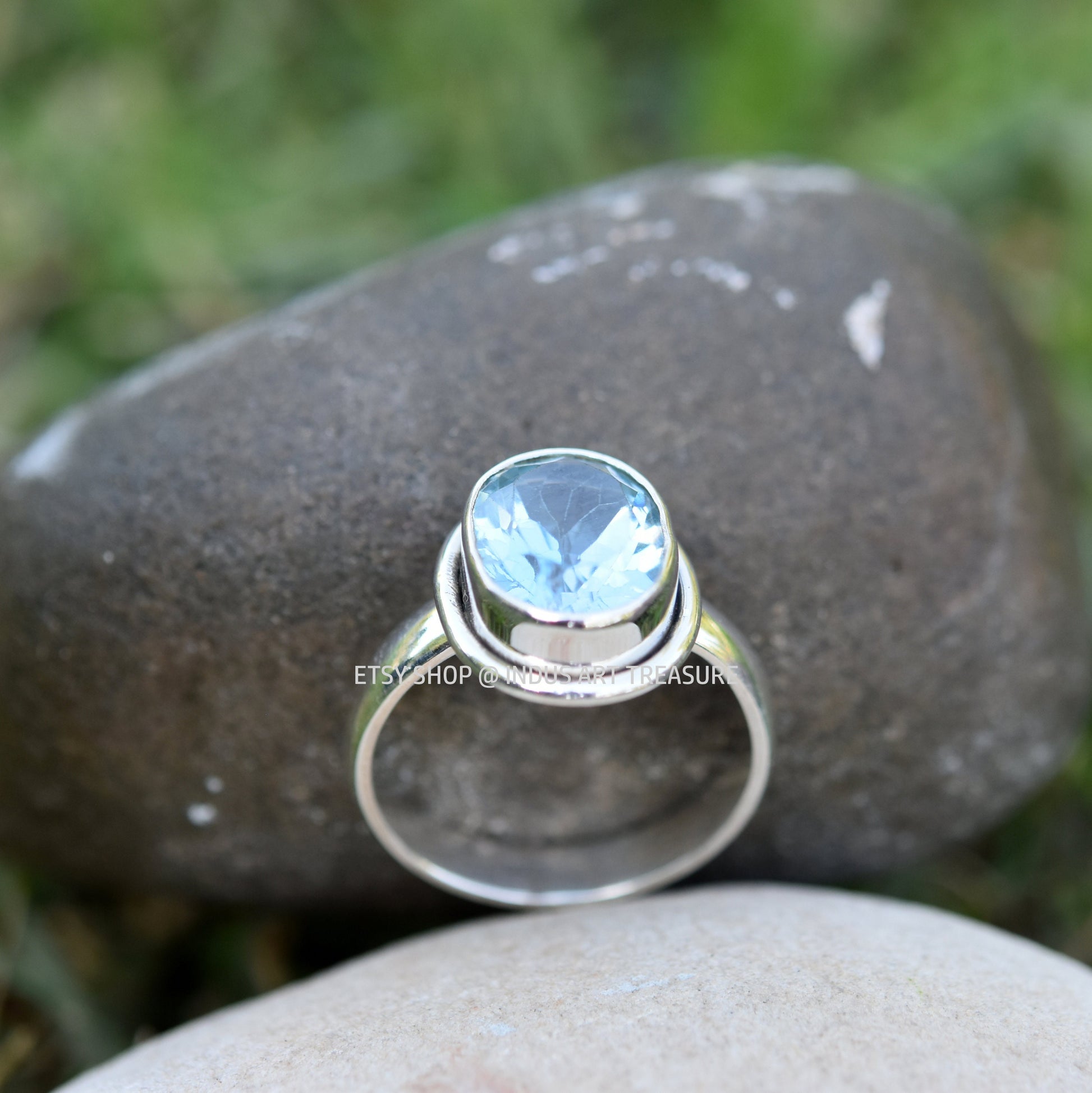 Product : Blue Topaz Dainty Ring, 925 Sterling Silver Ring, Blue Gemstone Ring, Gift for Her, Blue Ring, Stacking Ring, Handmade Ring, Festival Ring, November Birthstone ring.