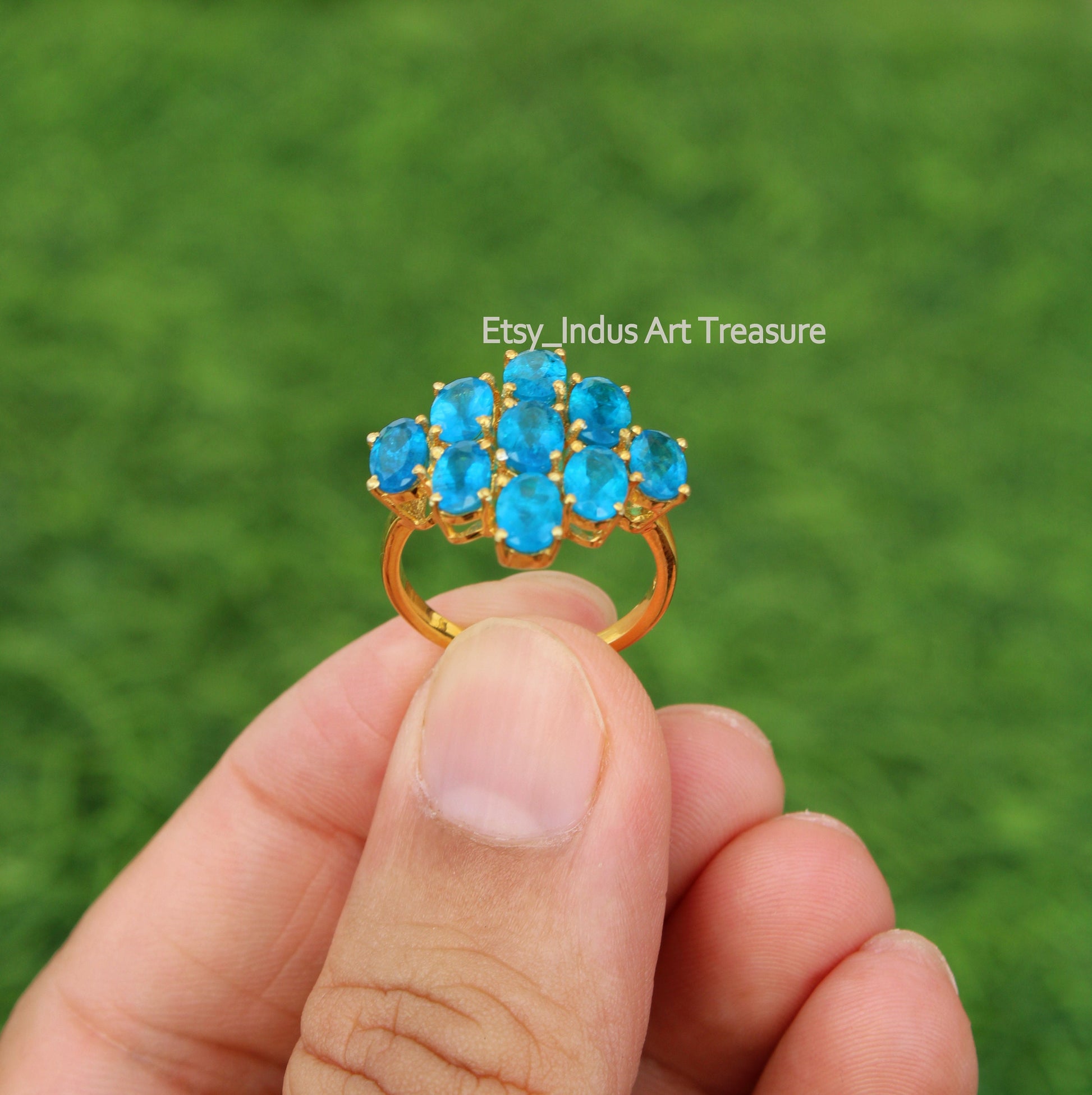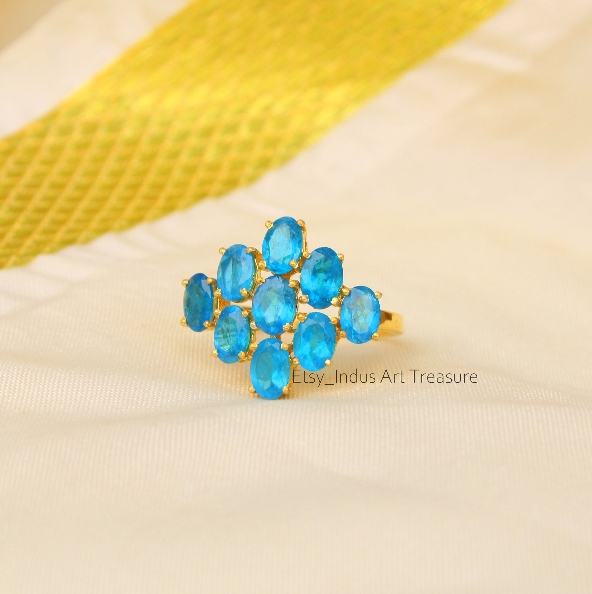 Product : Natural Blue Topaz Gold Cluster Ring for Special One/ Gold Plated 925 Sterling Silver Ring/ 18k Gold Rings for Women/ Blue Topaz Gemstone Ring/ Fine Stone Jewelry/ Perfect Ring for Wedding/ Anniversary Gift Ring for Her.