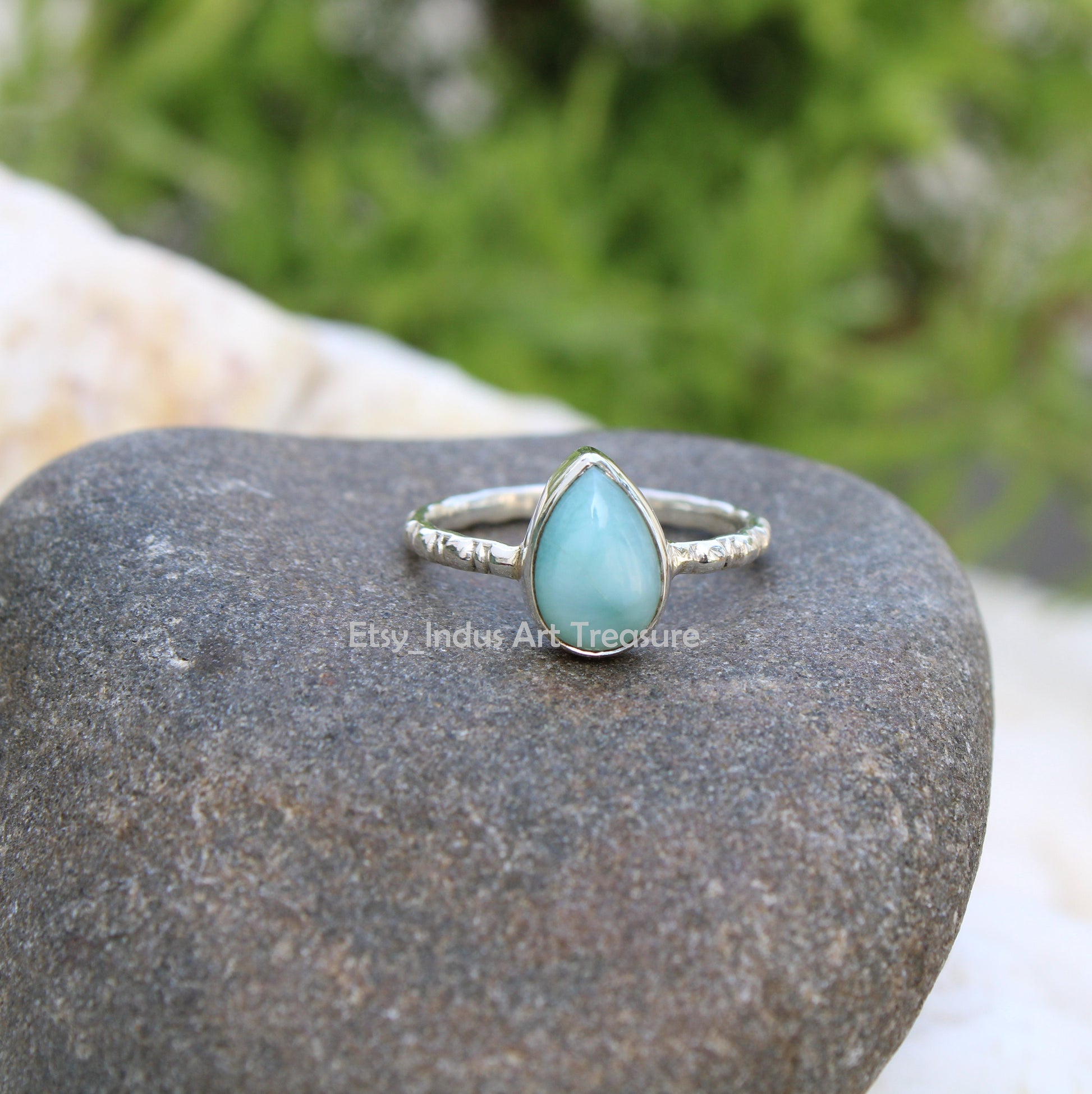 Product : Natural Calming Larimar Handmade Ring/ 925 Solid Sterling Silver Ring/ March Birthstone/ Unisex Ring/ Larimar Ring/ Anniversary Gift for Women/Handmade Indian Jewelry/ Blue Stone Ring/ Healing jewelry Ring.