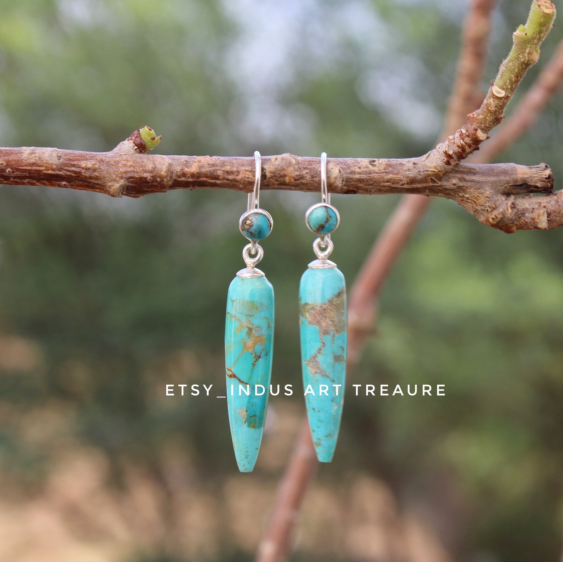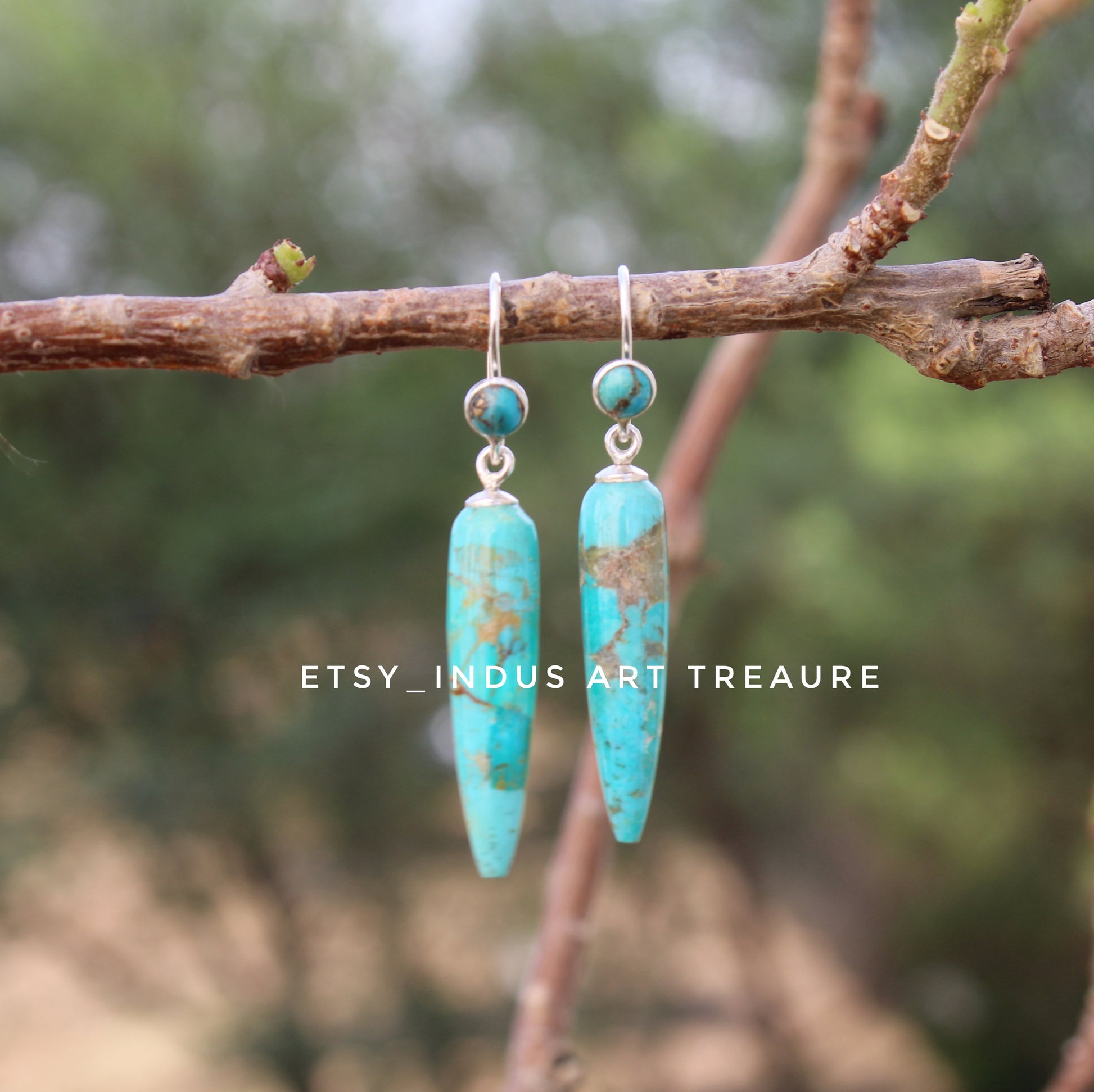 Material : Copper Turquoise + 925 Sterling Silver ( Nickel Free ) .
