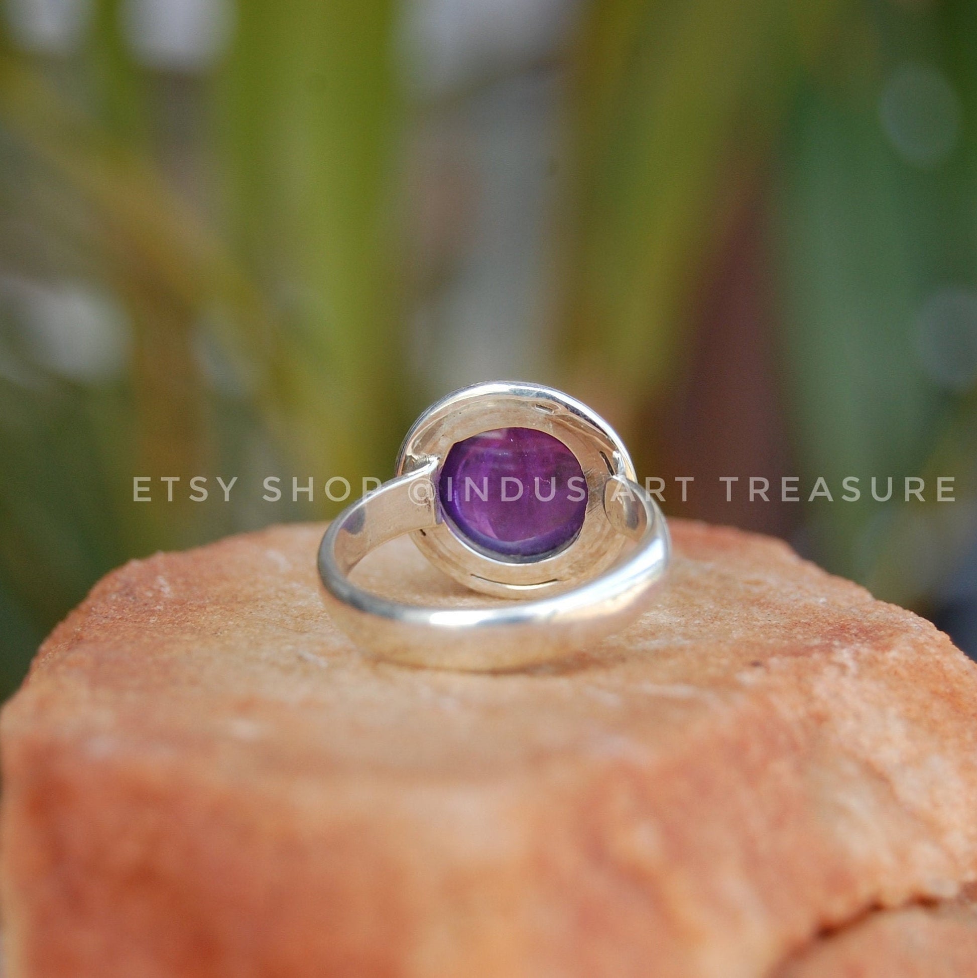 Product : Dedicated Purple Amethyst Dainty Ring, Nickel Free 925 Sterling Silver Ring, B'day Gift for Loved, February Birthstone Ring, Unisex Ring, Purple Gemstone Ring, Statement Ring,
