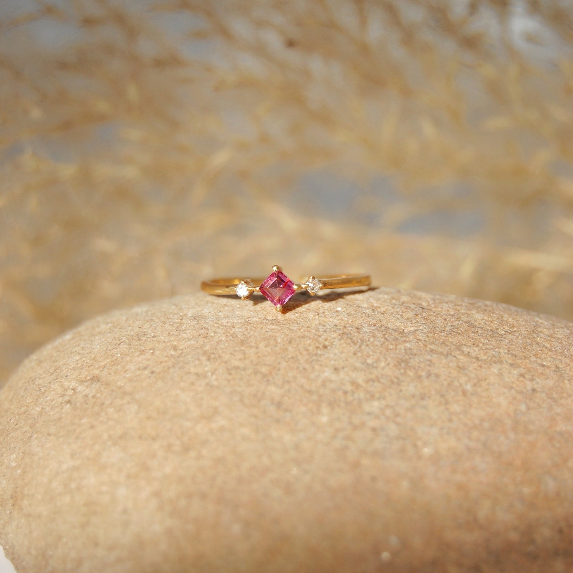 Stone Detail : Natural Pink Tourmaline Square Cut 5mm, Diamond 2mm.