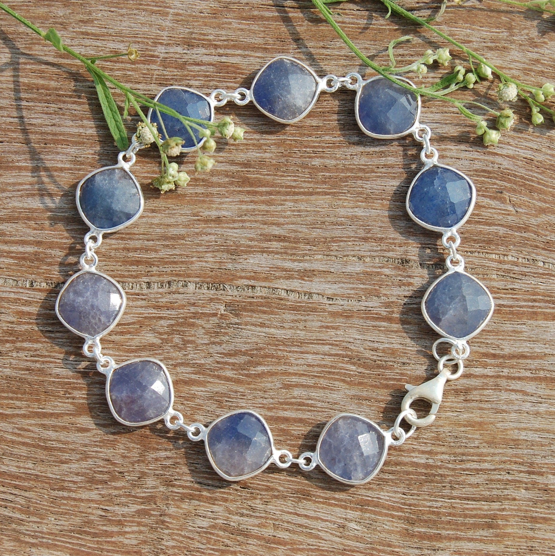 Dyed Blue Sapphire Checker Cut Square Bracelet