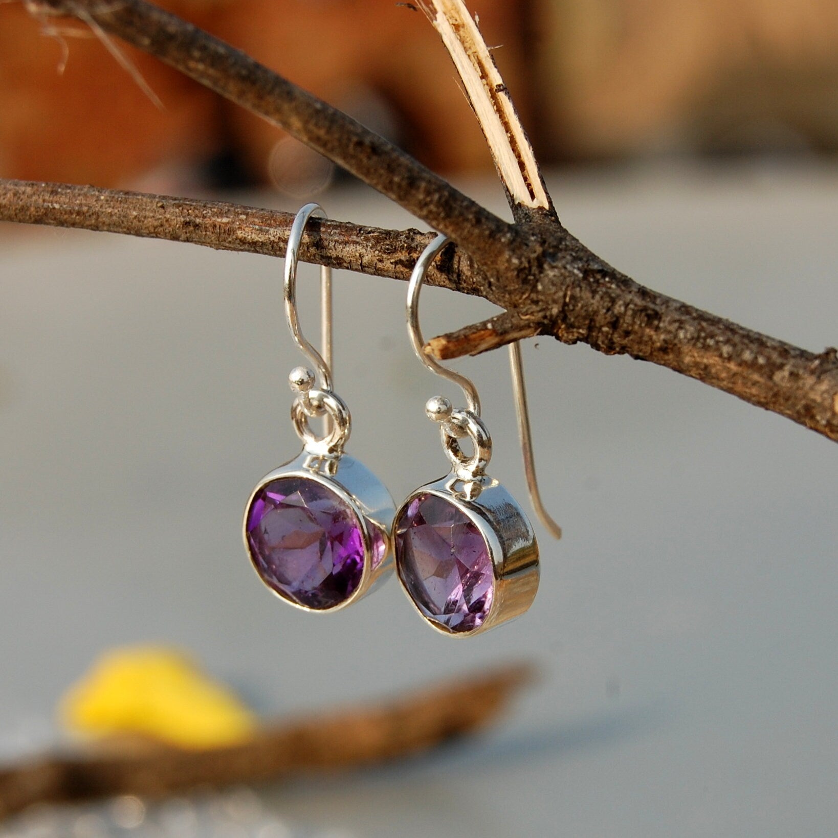 Product : Elegant Natural African Amethyst Round Cut Earrings.