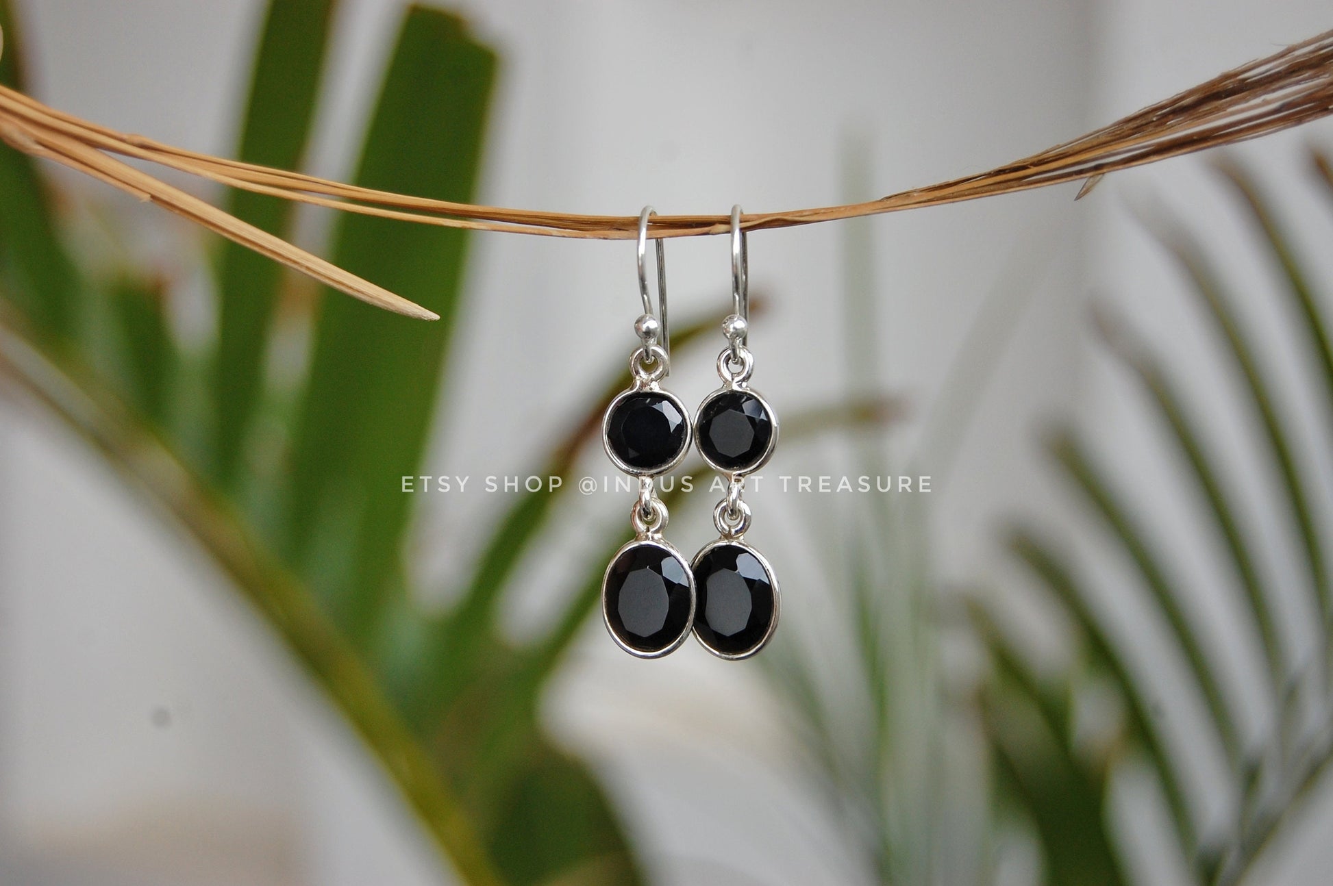 Product : Elegant Black Onyx three stone Long Cut Earrings.
