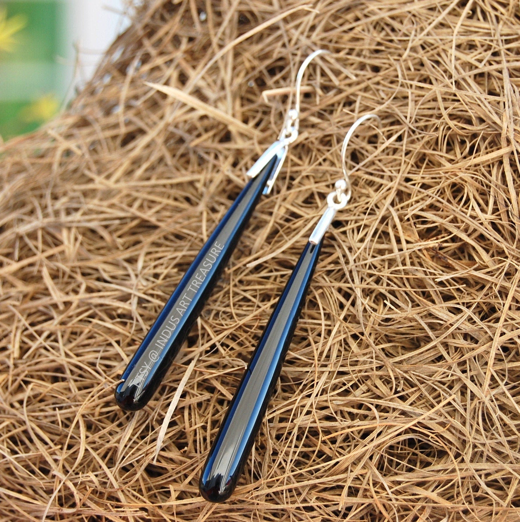 Product : Elegant Elegant Black Onyx Long Dangling Earrings for Love, Earrings for Women, Gifts for Mom/ Grandmother, Festival Gift, Black Earrings, Fine Stone Jewelry, Nickel Free Silver Jewelry, 925 Sterling Silver Earrings, Black Gemstone Earrings.