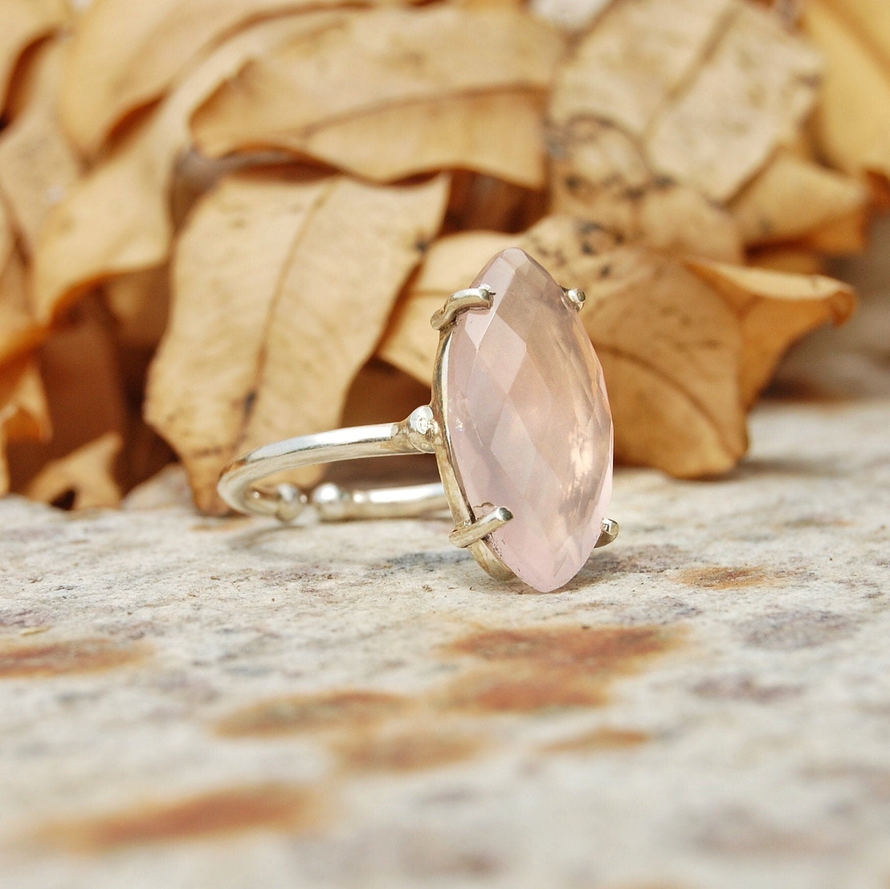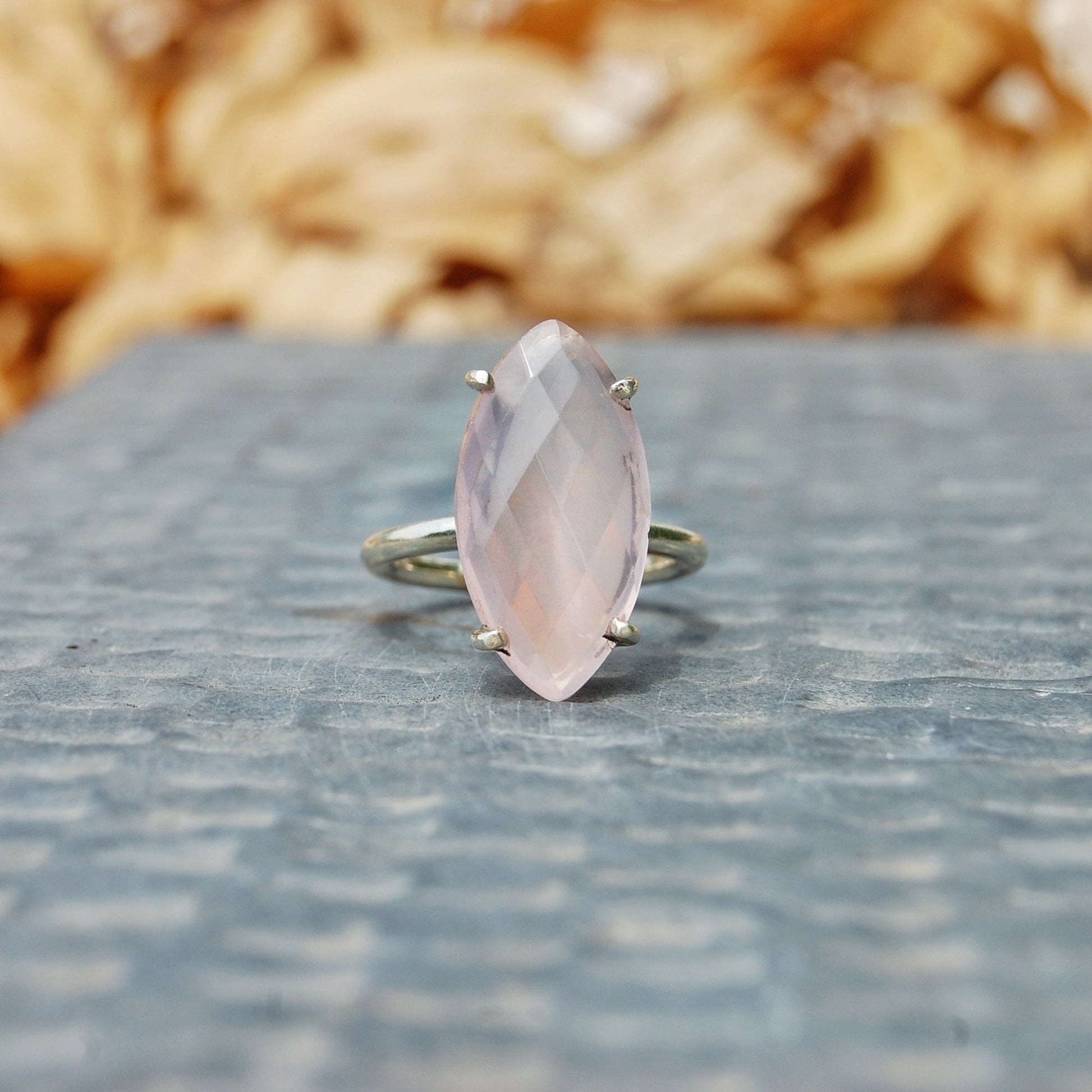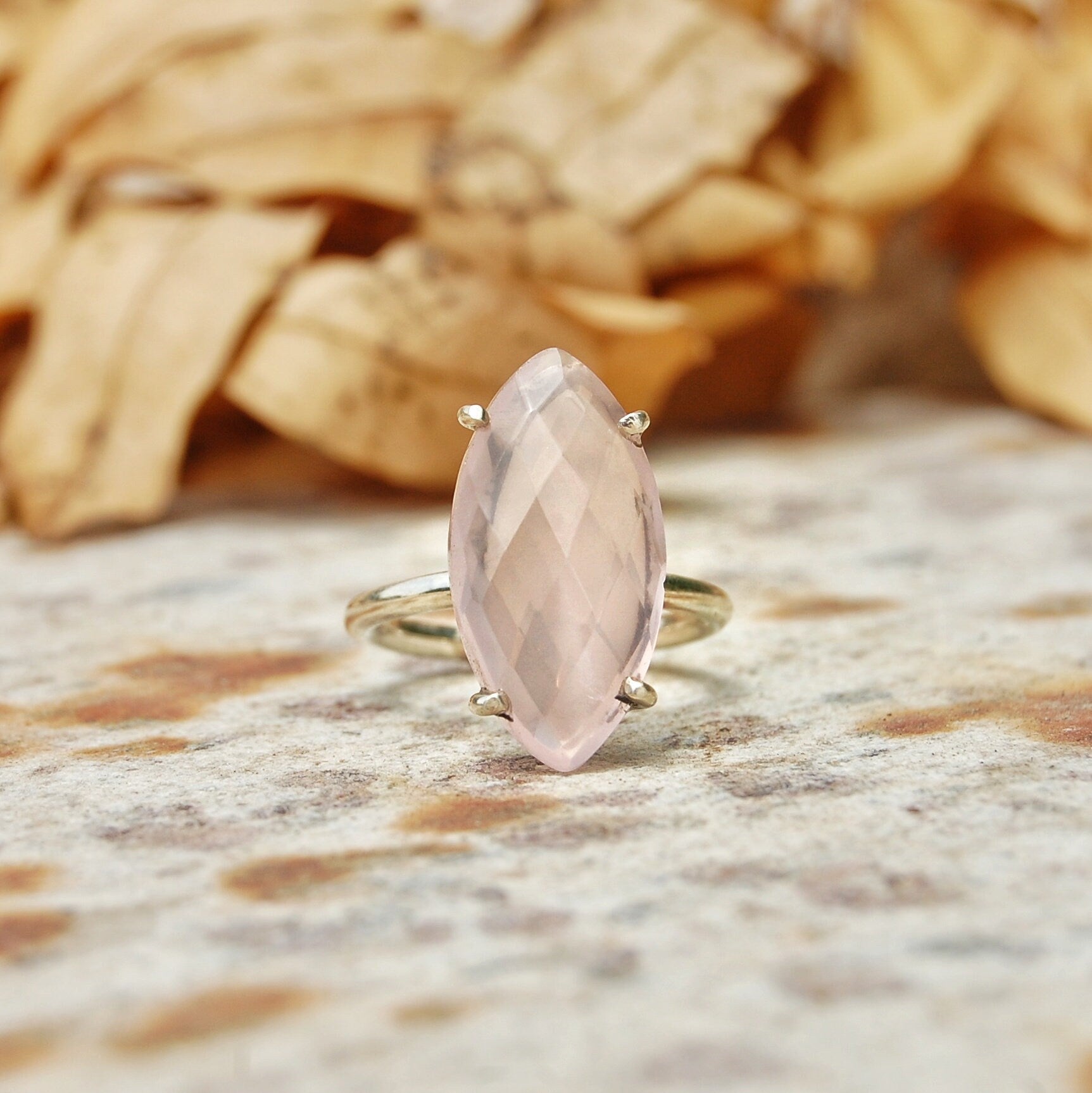 Product : Elegant Rose Quartz Checker Cut Marquise Designer Ring