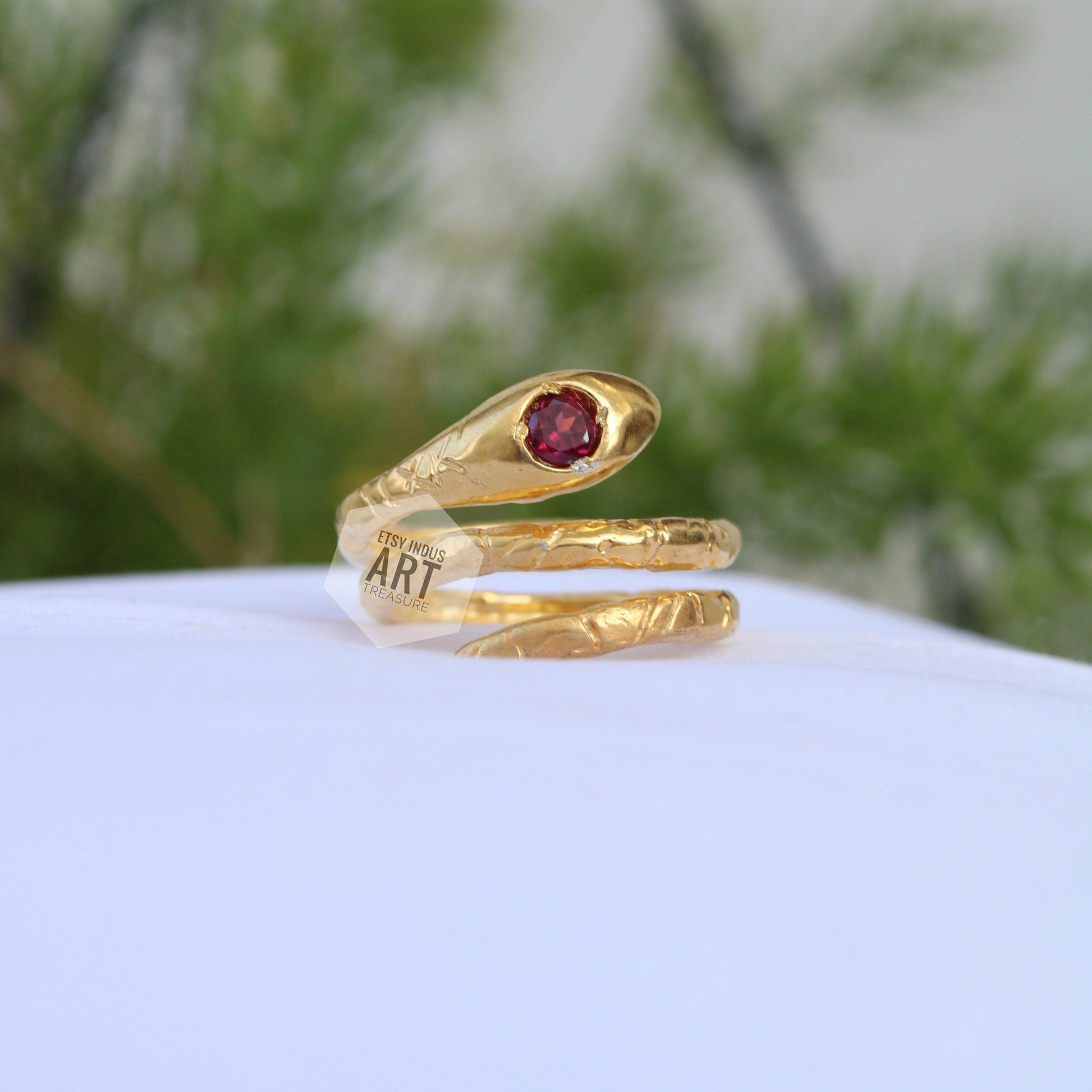 Product : Natural Red Ruby Gold Plated 925 Sterling Silver Handmade Snake Ring/ Valentines Gift for Her.