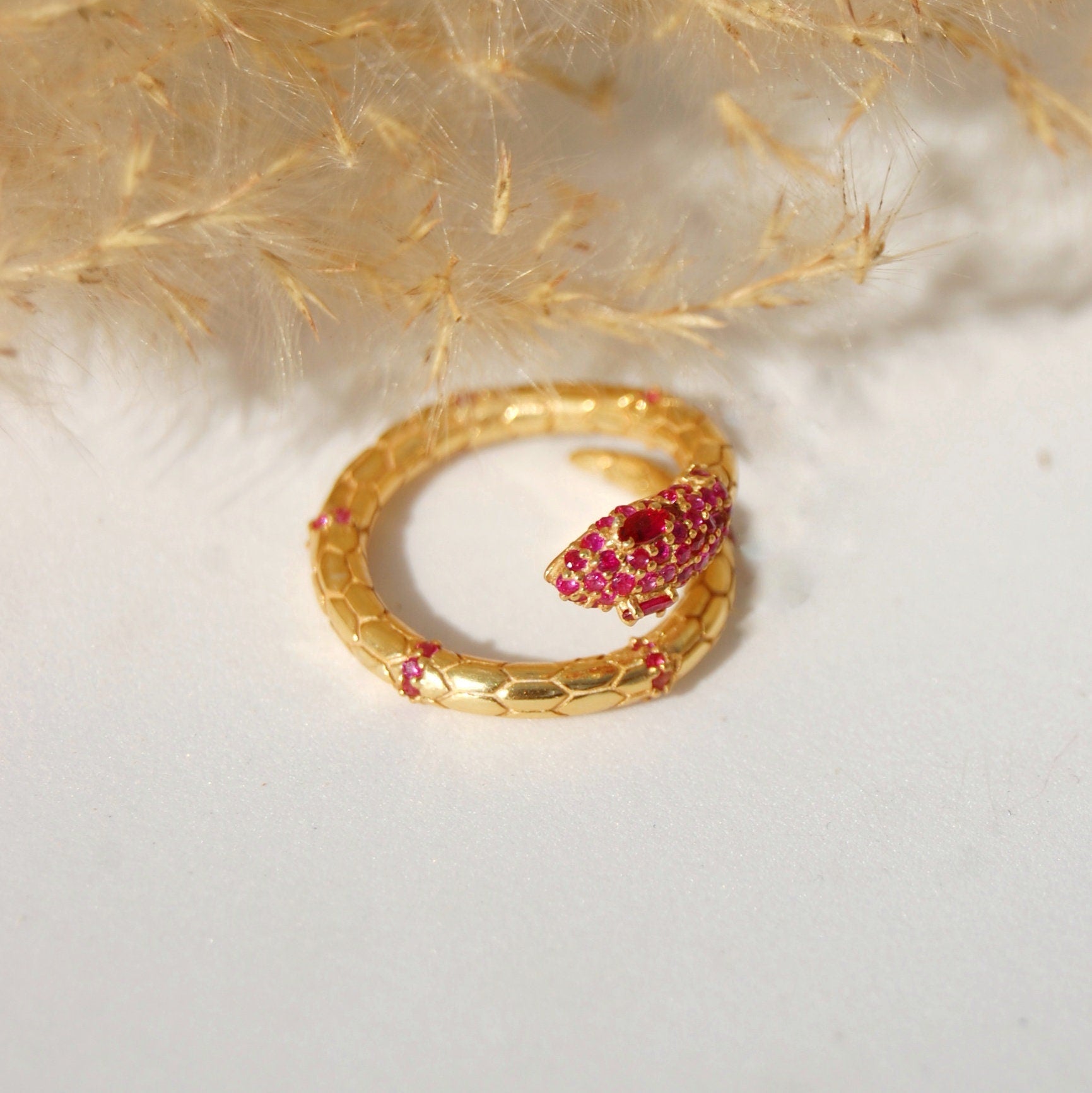 Product : Natural Red Ruby Gold Plated 925 Sterling Silver Handmade Snake Ring/ Valentines Gift for Her.