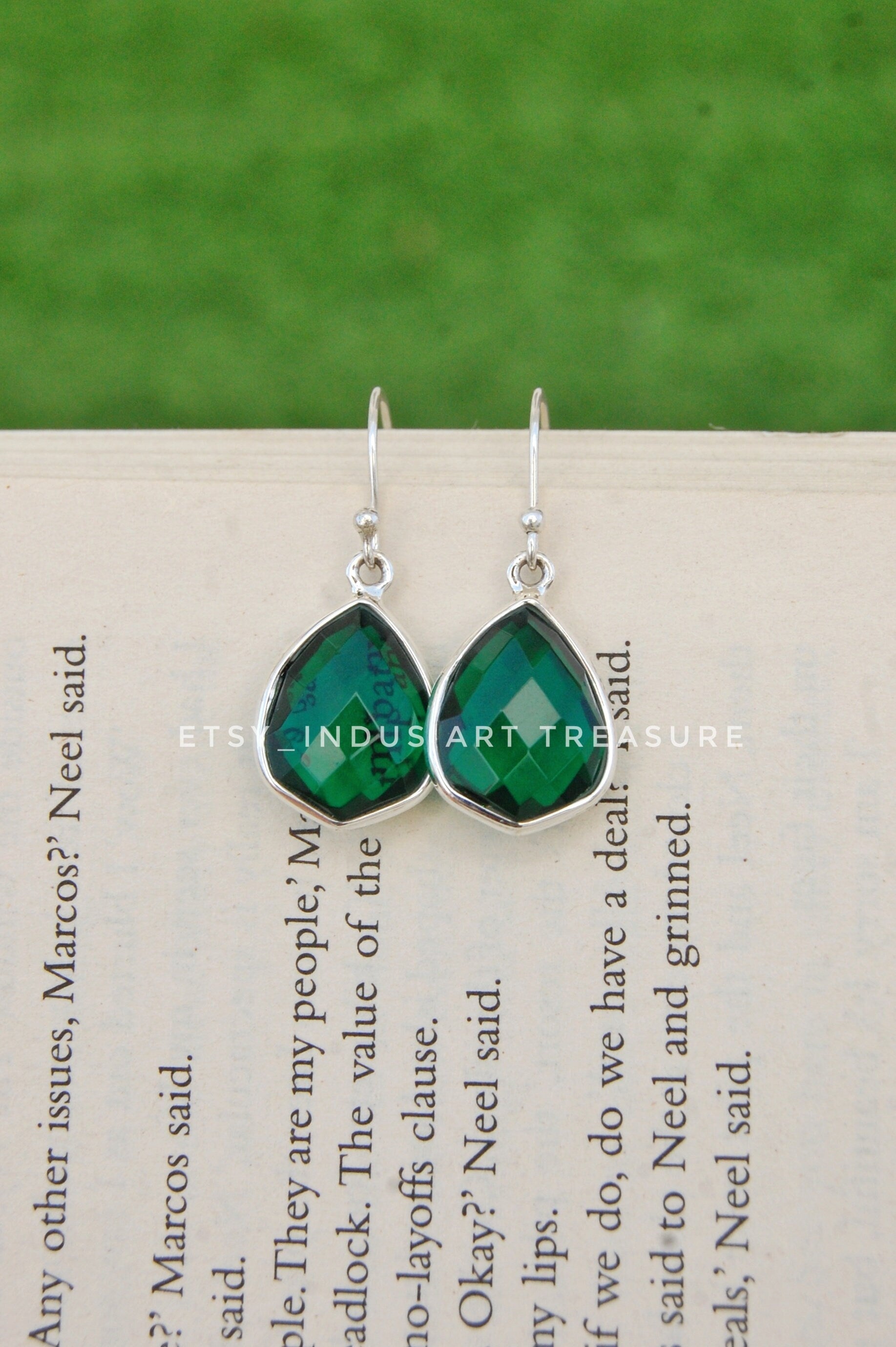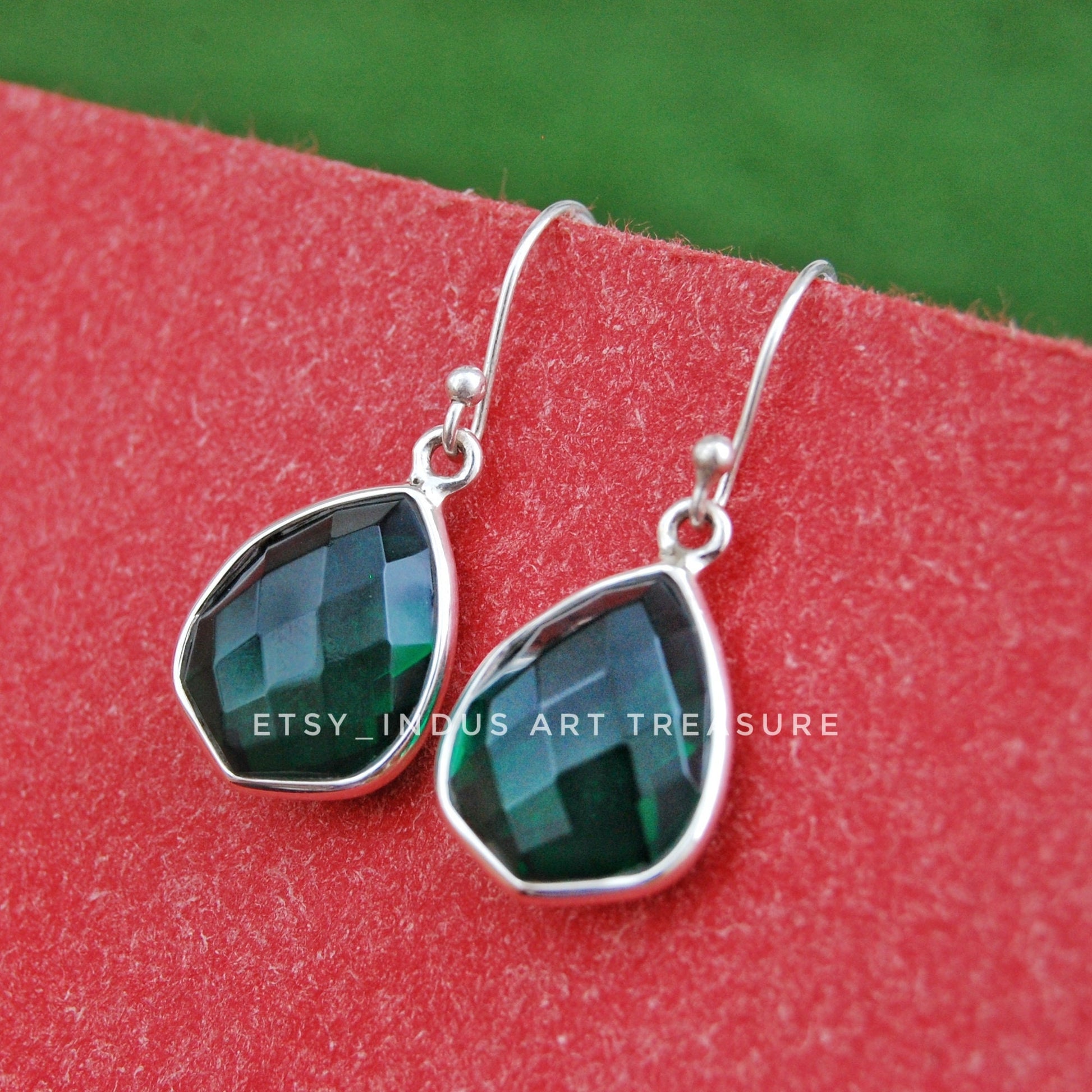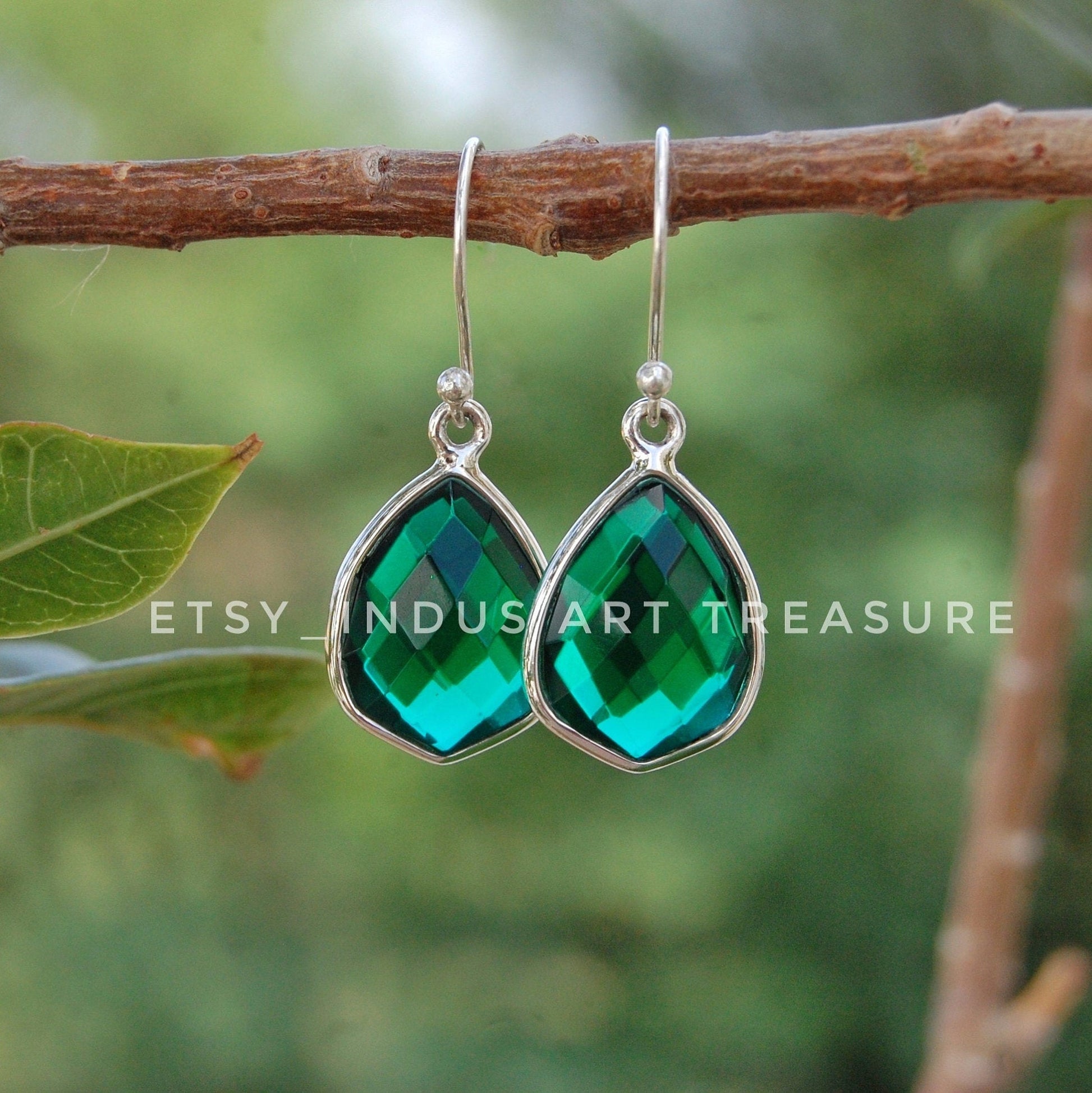 Product : Emerald Drop Silver Earrings, 925 Sterling Silver Earrings, Green Emerald Earrings, Emerald Jewelry, Bridal Earrings, Anniversary Gift Jewelry, May Birthstone Earrings, Dangling Earrings, Gifts for Her.