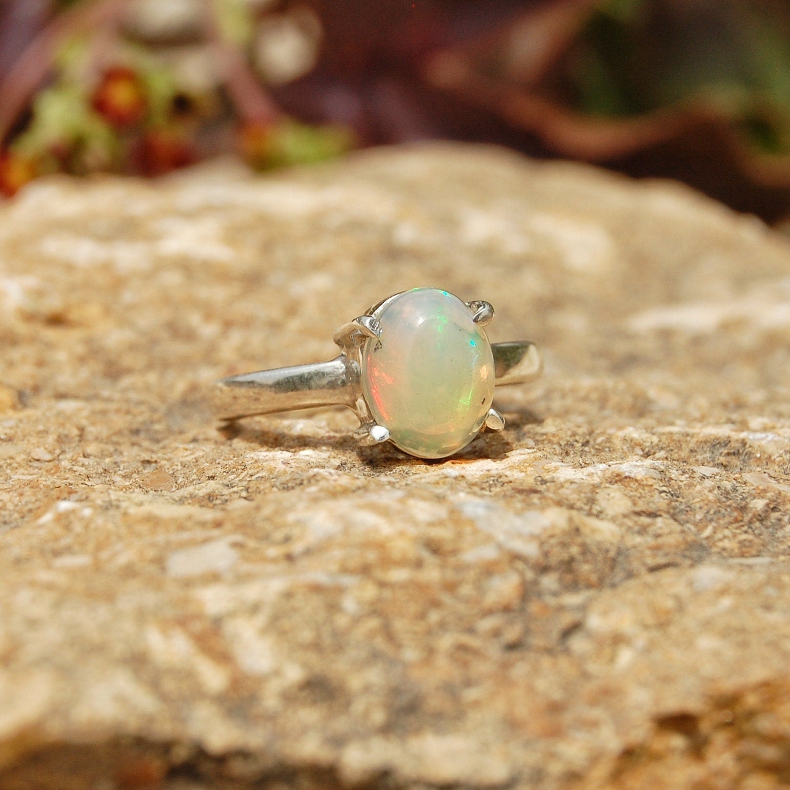 Product : Natural Ethiopian Opal Oval Cab Prong Setting Ring.