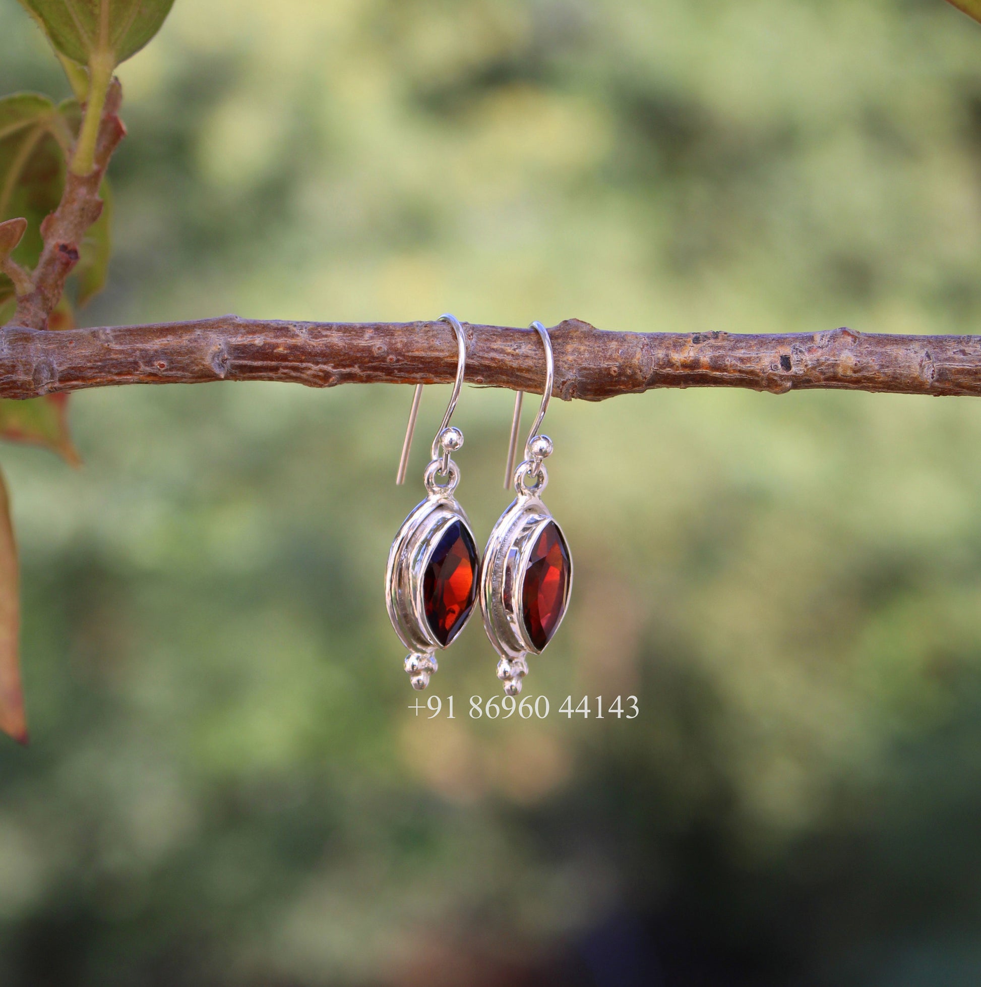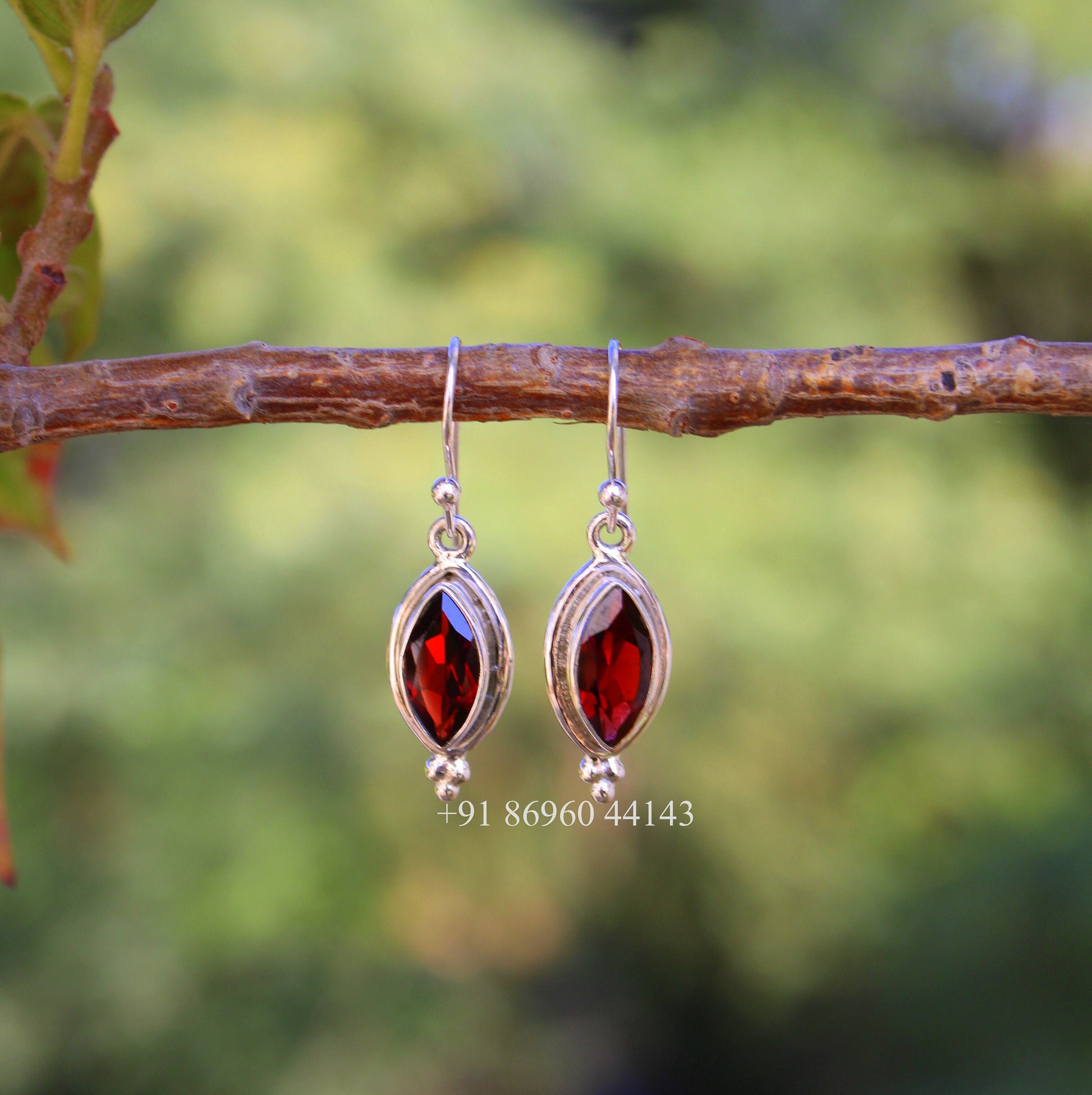 Product : Elegant Red Garnet Handmade Long Earrings/ Drop Earrings for Her/ 925 Sterling Silver Earrings/ Red Gemstone Earrings/ Teardrop Earrings/ Garnet Earrings/ Gift for Her/ Garnet Jewelry/ Wedding Jewel