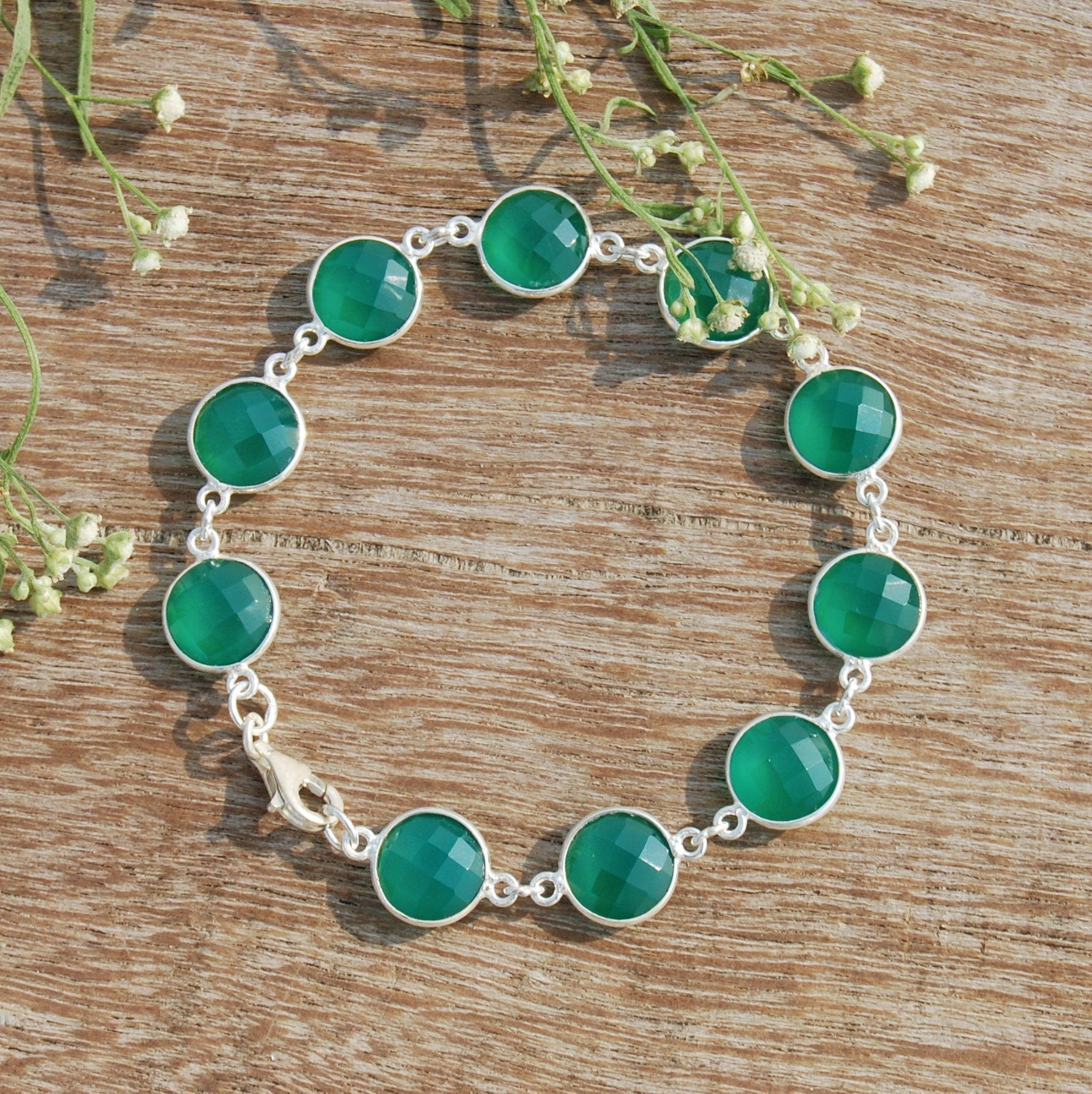 Product : Green Onyx Round Checker Cut Beaded Bracelet