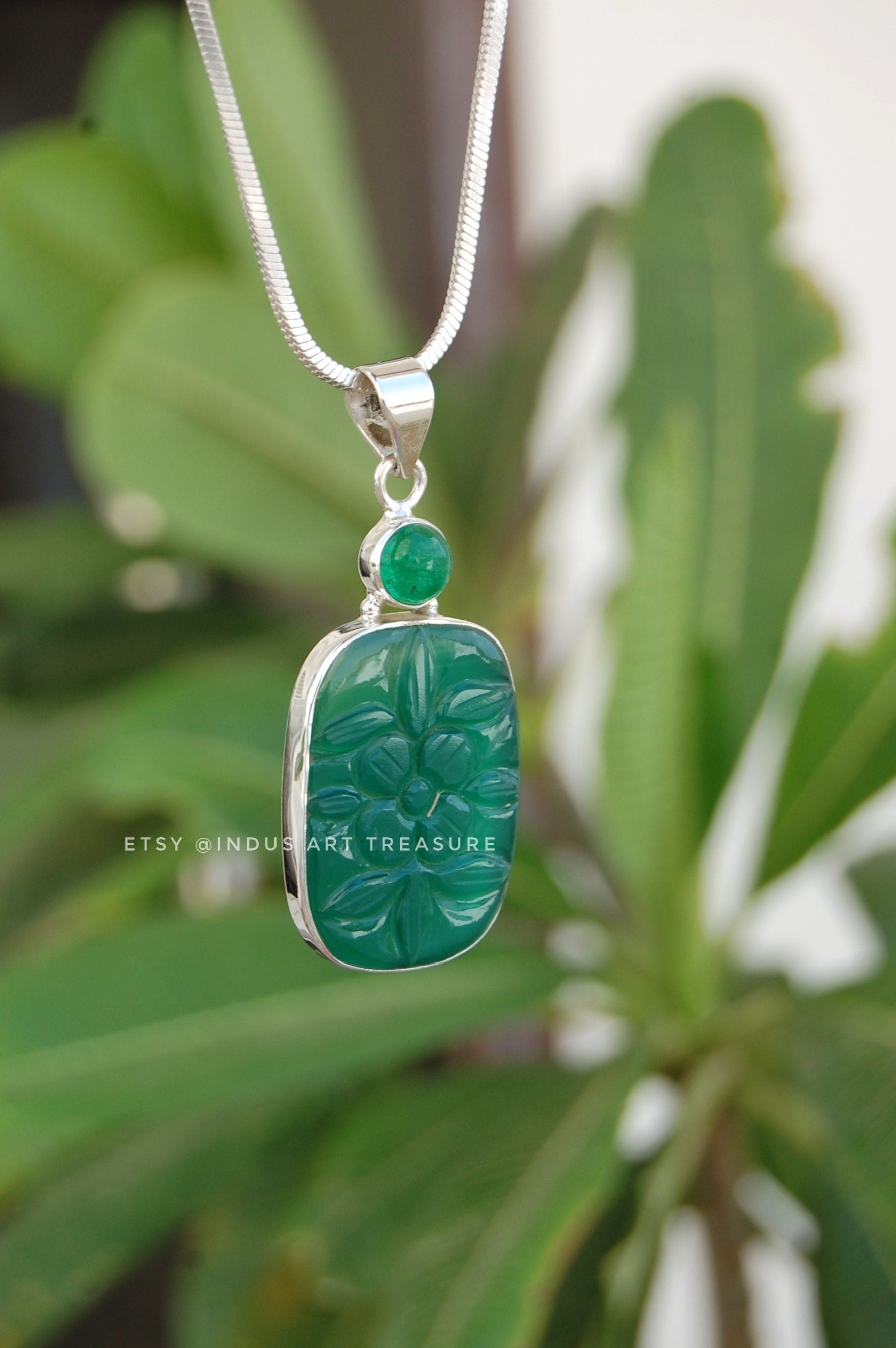Product : Healing Green Gemstone Jade & Onyx Craved Pendant Necklace, Mother Nature Pendant Jewelry, May Birthstone Jewelry, Nature Lover Charm Pendant, Green Gemstone Pendant Necklace for Women's, Green Onyx Statement Pendant, Nickel Free 925 Sterling Silver Pendant, Party Wear Pendant, Birthday Gift for Her, Indian Handmade Jewelry, Gift for Girlfriend.