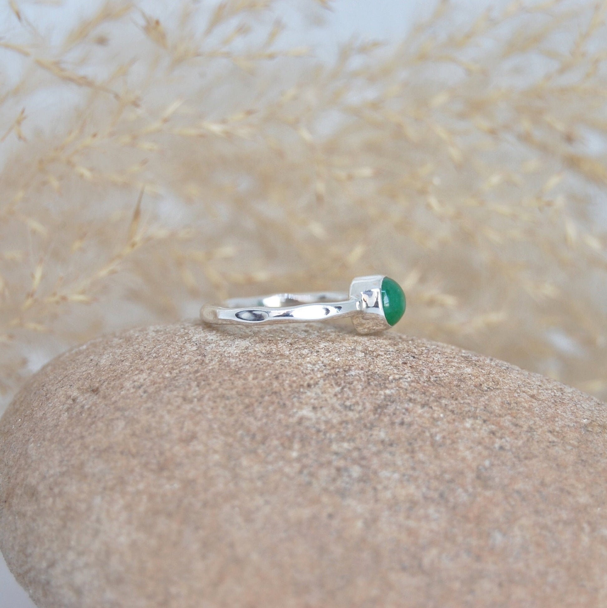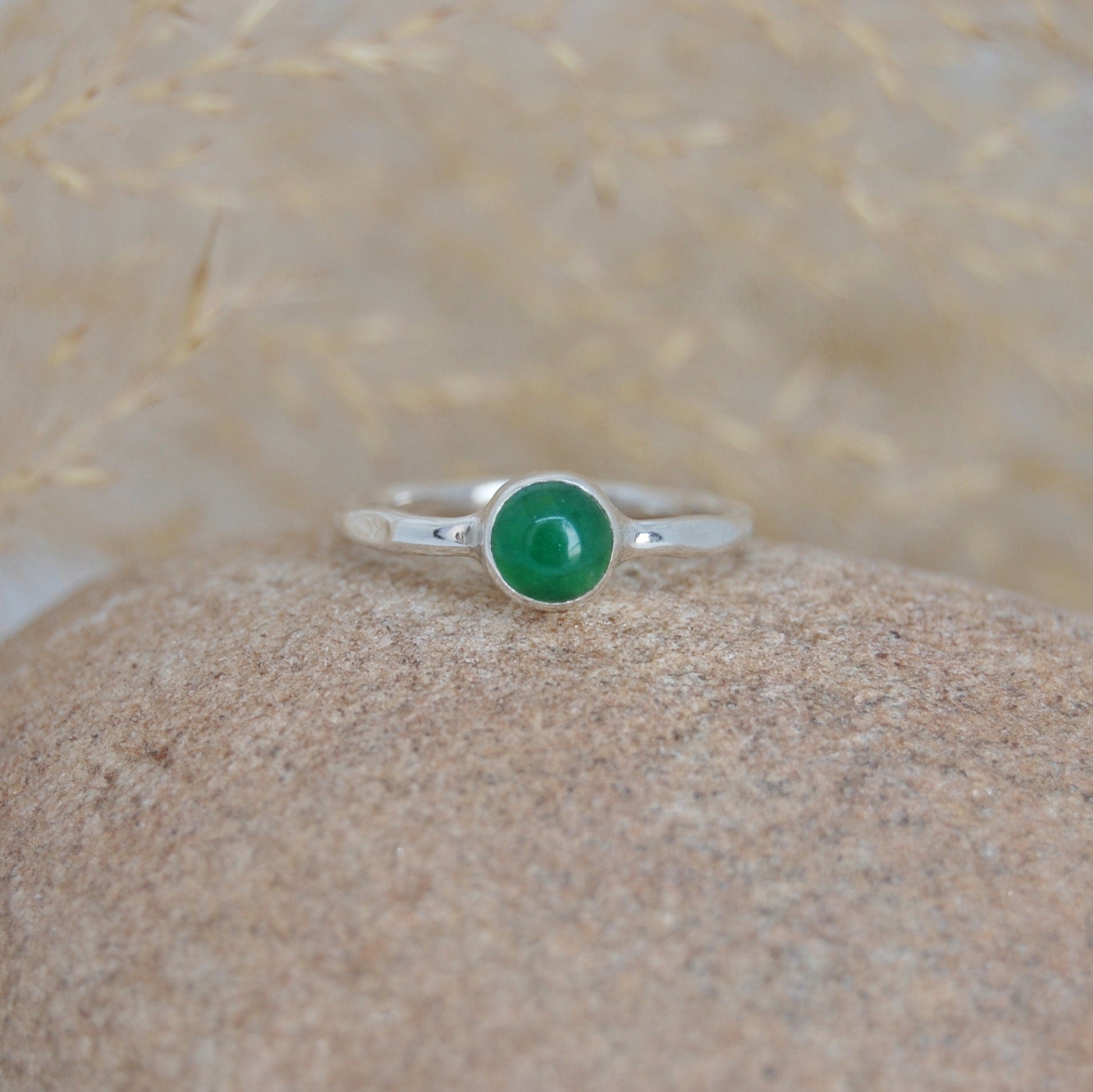 Product : Natural Jade Stone Hammered Band Healing Ring.