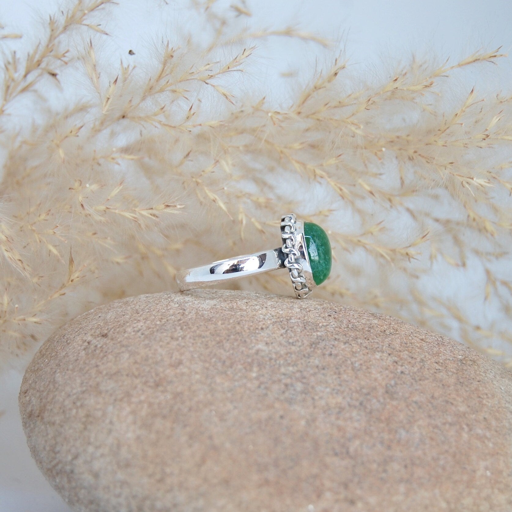 Material : 925 Sterling Silver Ring & Natural Green Jade.