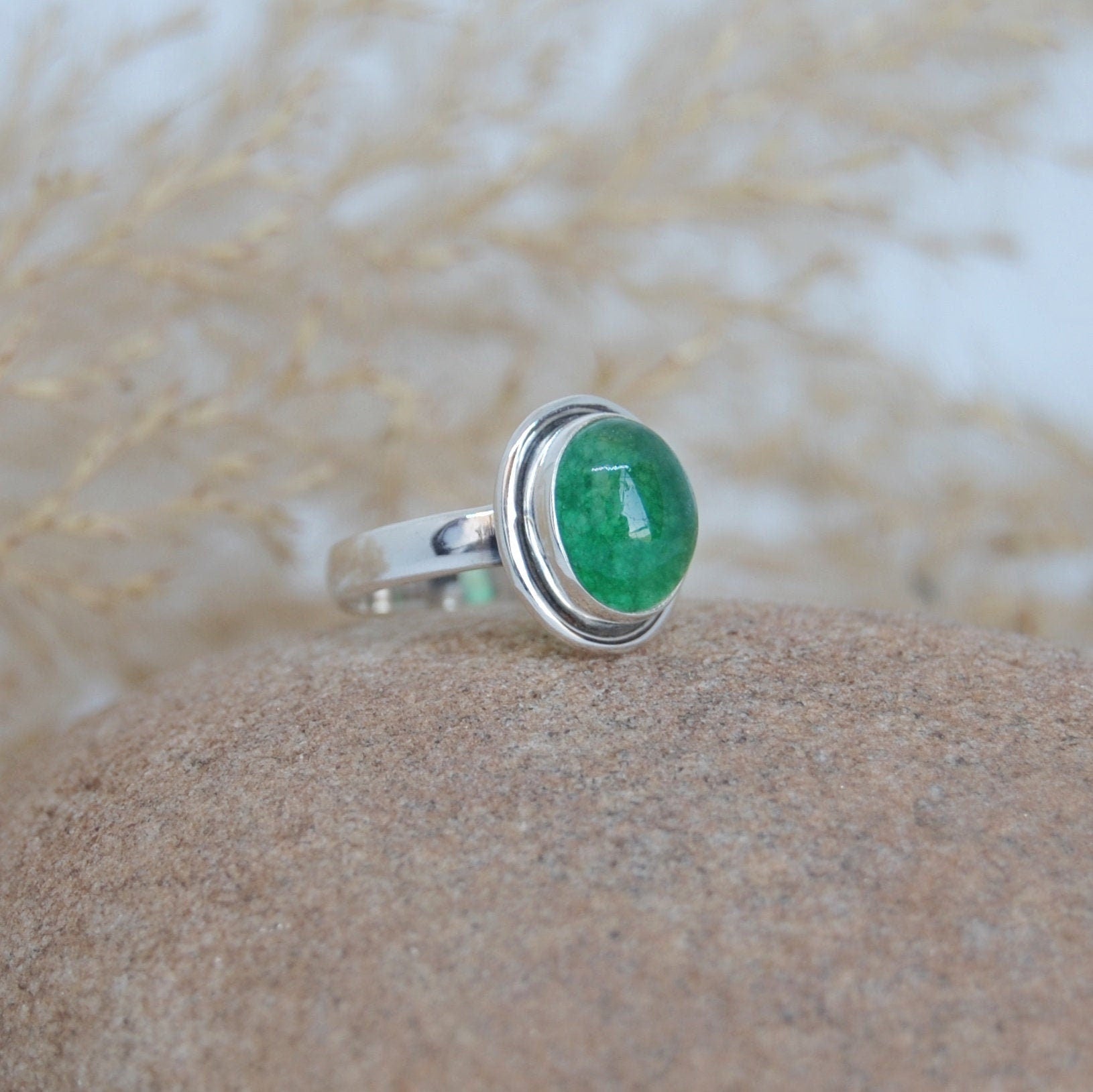 Material : 925 Sterling Silver Ring & Natural Green Jade.