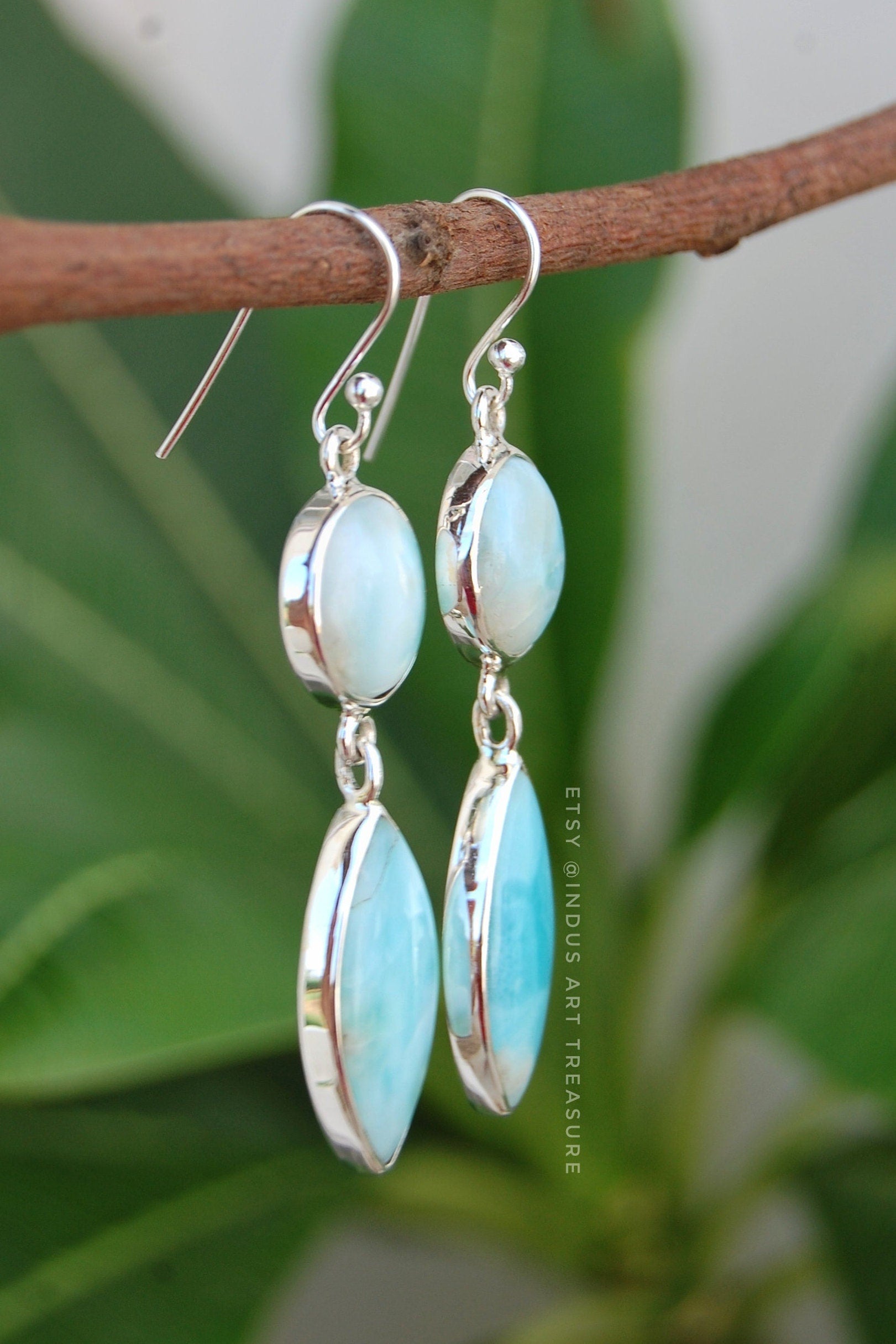 Product : High Grade Natural Larimar Earrings for Her/ August Birthstone/ Carnelian Earrings/ 925 Sterling Silver Earrings/ Stefilia's Stone/ Calming Larimar/ Birthday Gift for Her/ Valentines Gift/ Healing Mood Earrings/ Gifts for Her.