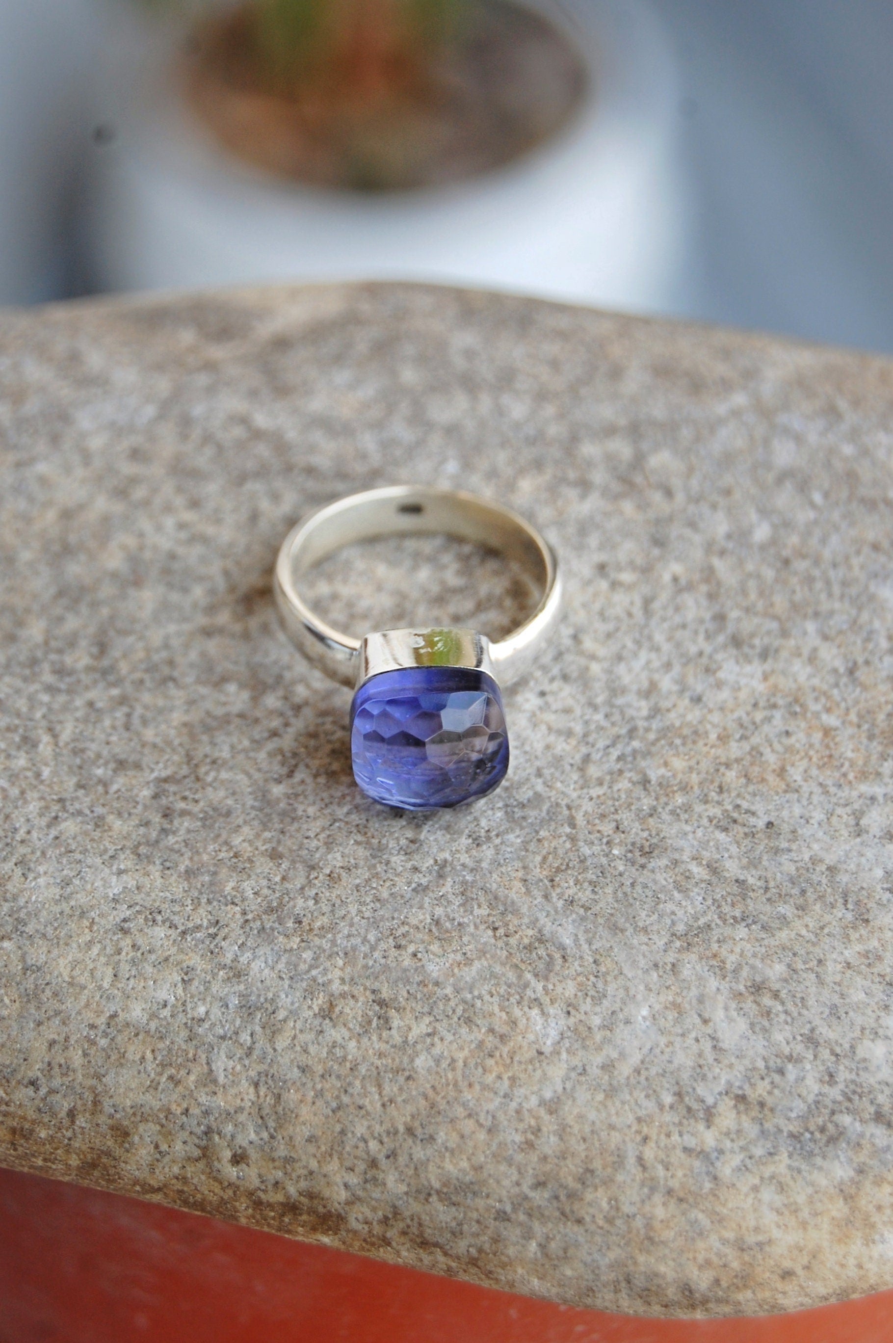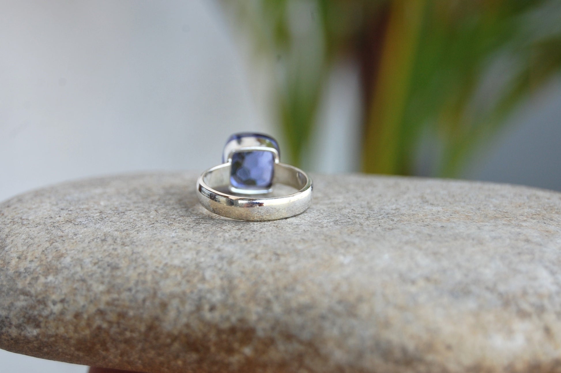 Product : Iolite Handcrafted Honeycomb-Modern Theme Dainty Ring/ 925 Sterling Silver Ring/ November Birthstone/ Iolite Ring/ Honeycomb-Faceted Ring/ Gift to Her.