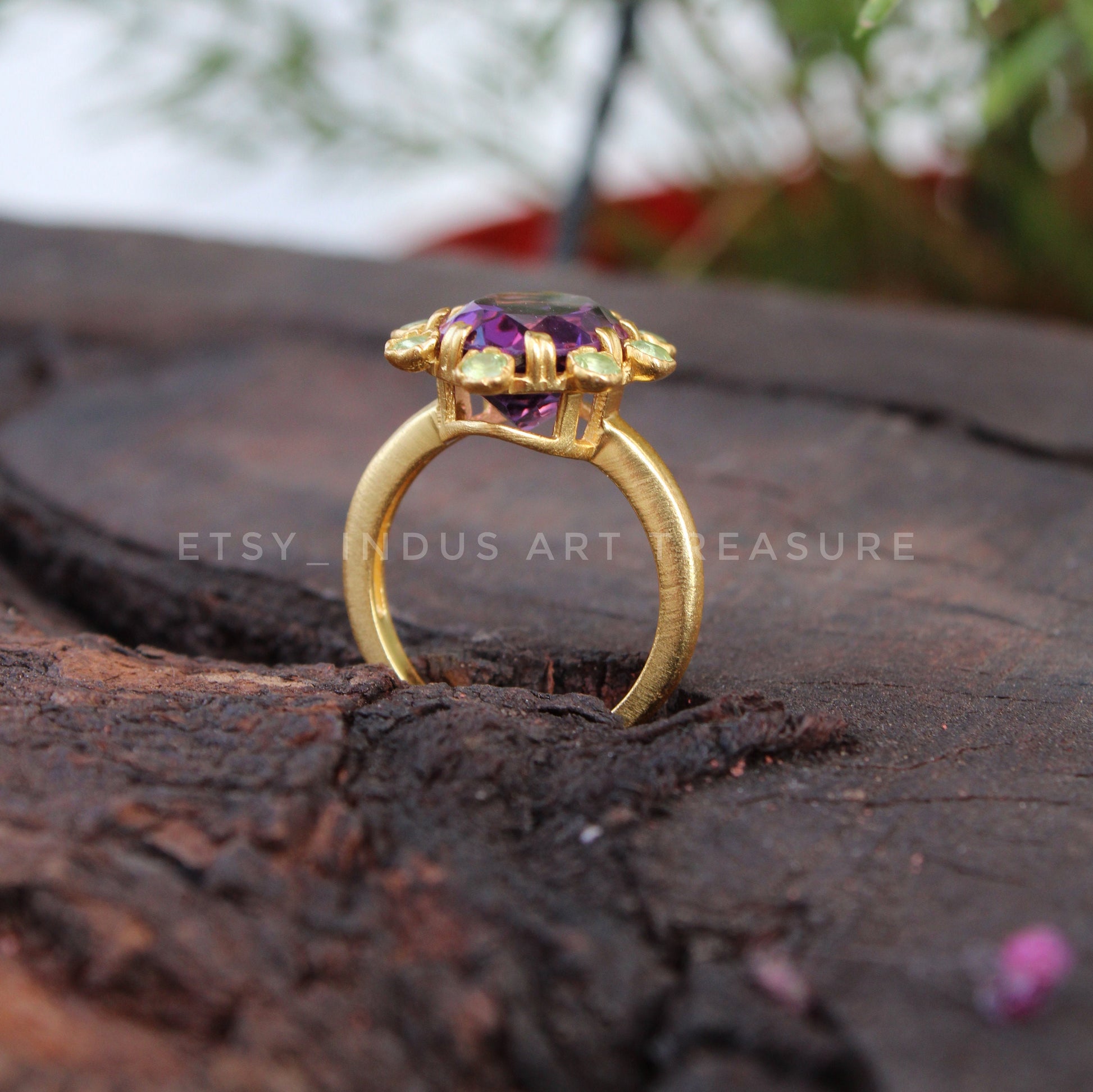 Product : Natural Amethyst Gold Ring, Purple Amethyst Engagement Ring, February Birthstone Ring for Her, Purple Gemstone Ring, Anniversary Birthday Gift For Her, Yellow Gold Ring etc