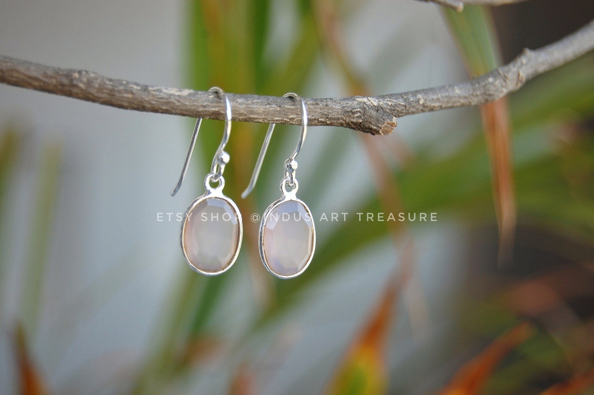 Product : Lovely Pink Chalcedony Drop Earrings/ Pink Chalcedony Earrings/ 925 Sterling Silver/ Pink Earrings/ Elegant Earrings/ Womens Earrings/ Gift.