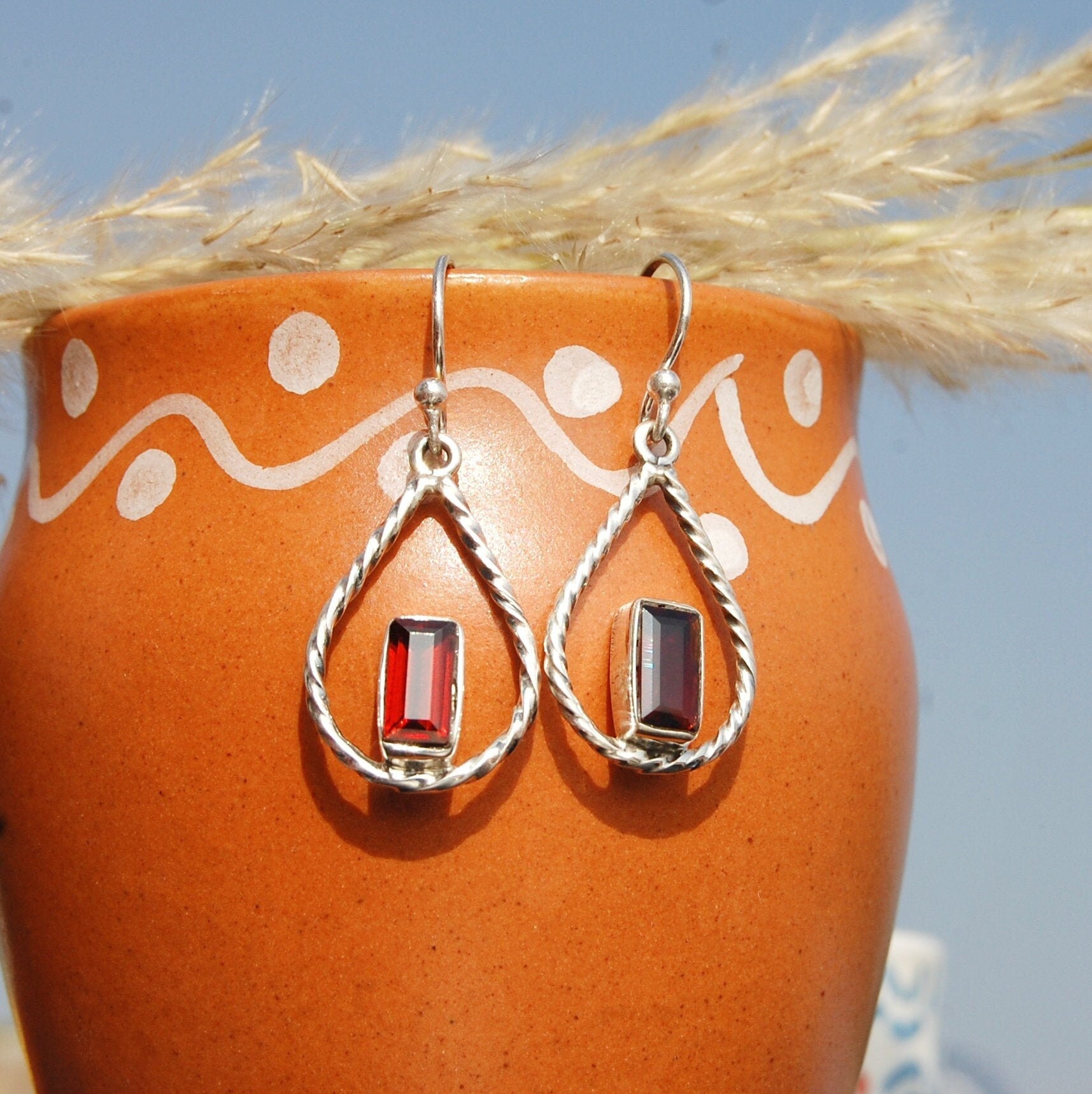 Material : 925 Sterling Silver & Natural Red Garnet.