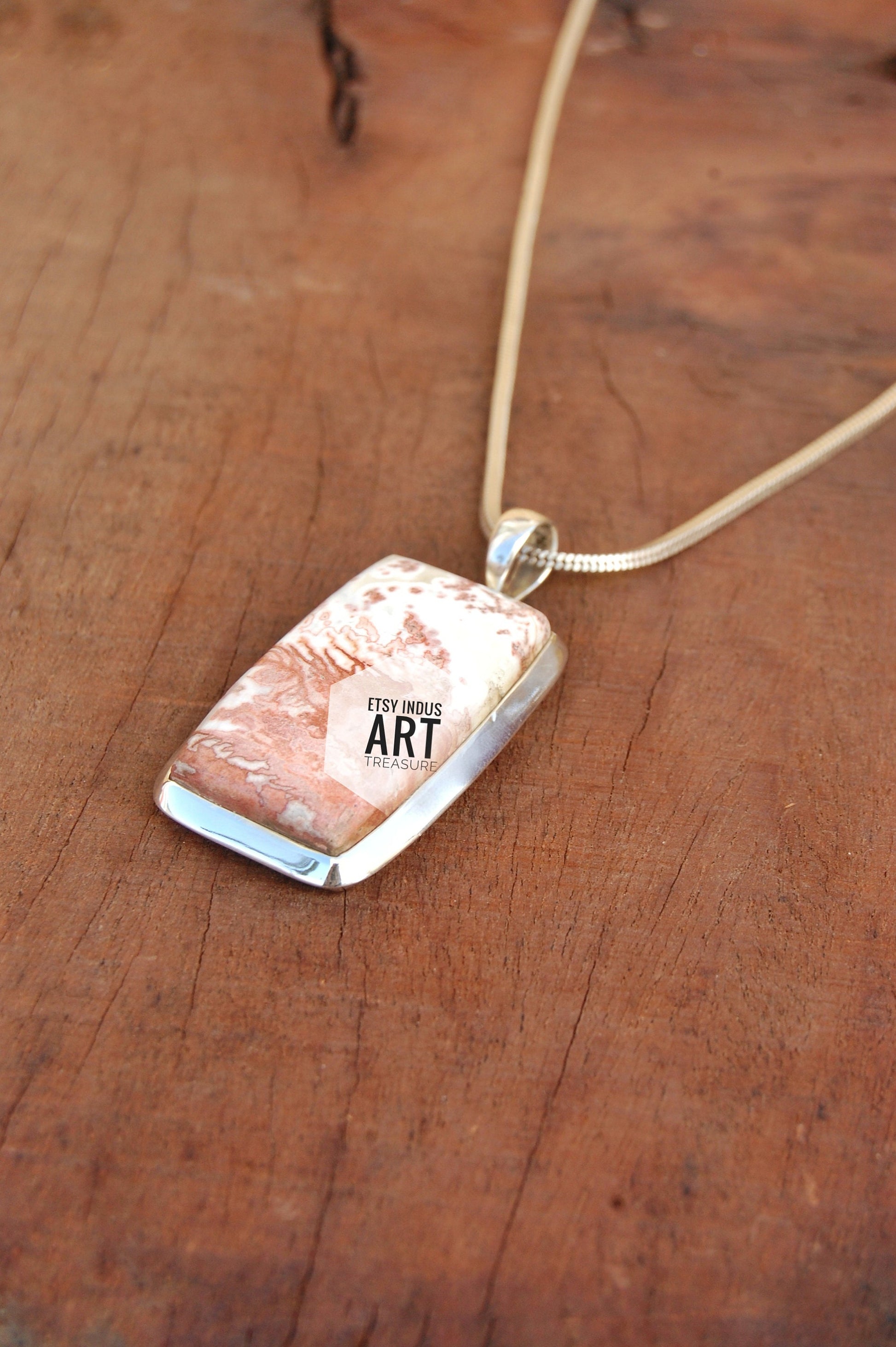 Product : Lovely Rosetta Jasper Designer Statement Pendant/ 925 Sterling Silver Pendant Jewelry/ Necklace Pendant/ Birthday Gift for Her/ Jasper Jewelry/Healing Pink Gemstone Necklace/ Gift for Mom/ Party Wear Jewelry