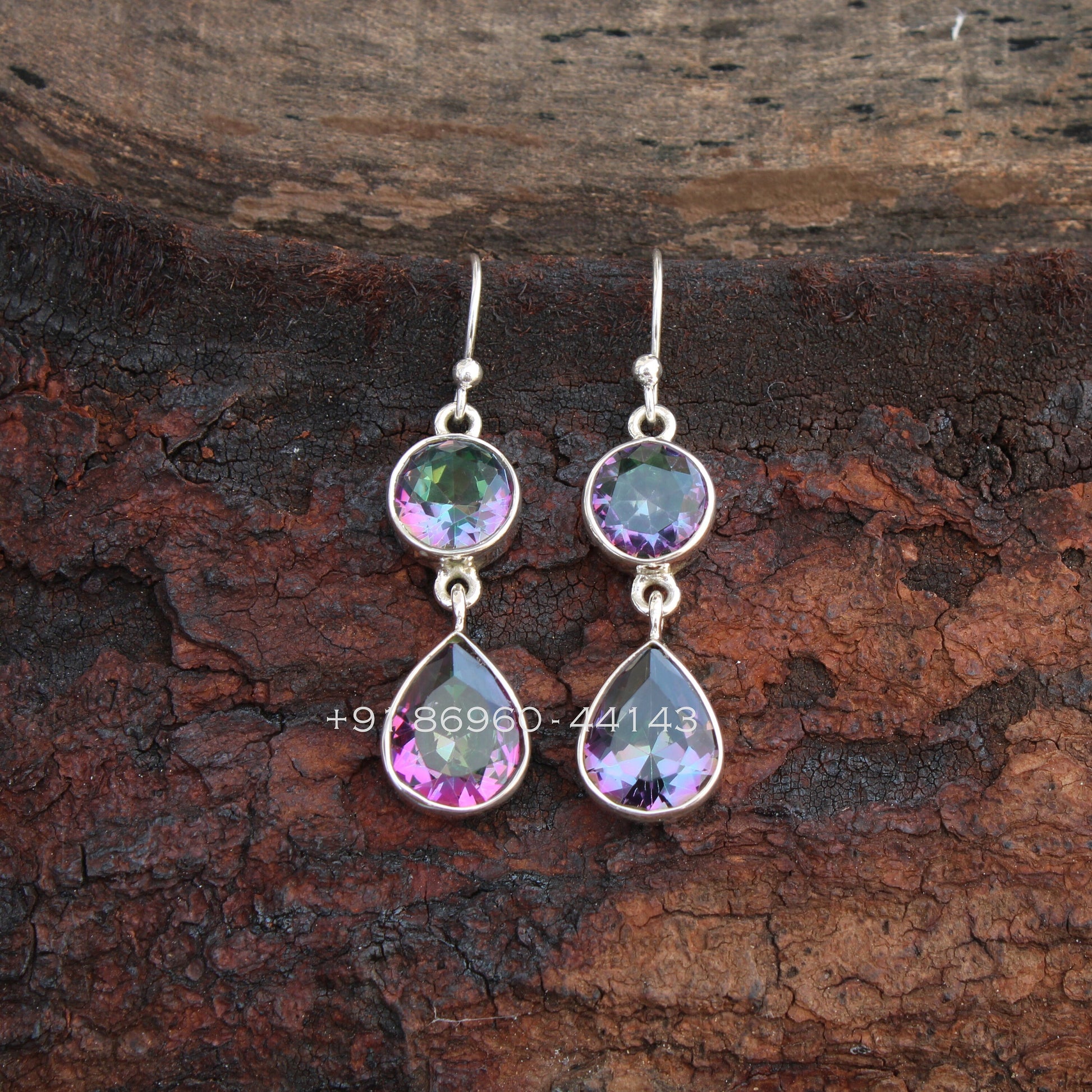 Product : Mystic Topaz Handmade Silver Earrings, Nickel Free 925 Sterling Silver Earrings, November Birthstone Jewelry, Mystic Topaz Earrings, Boho Earrings for Women, Anniversary Gift Ring.