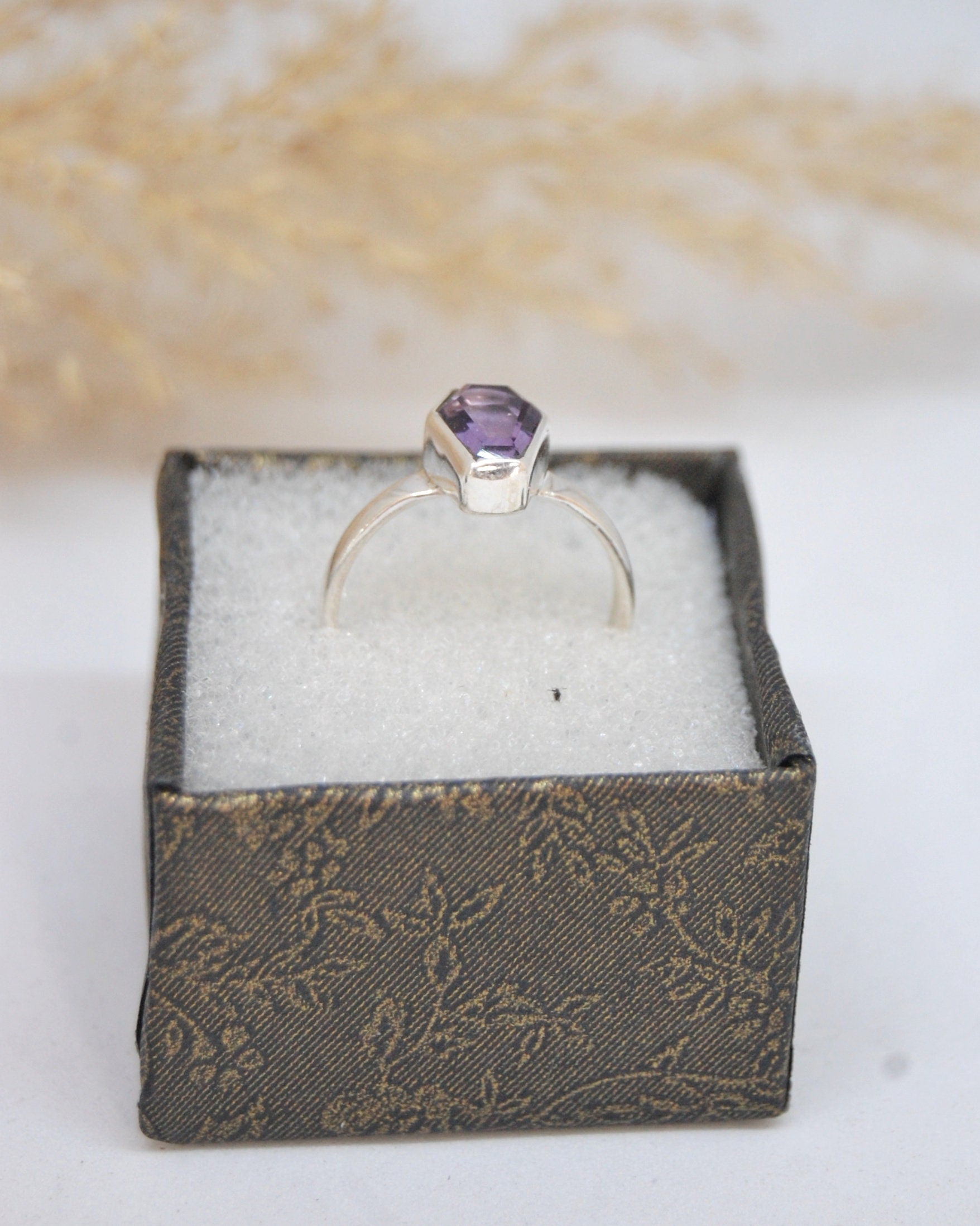 Material : 925 Sterling Silver Ring & Natural Amethyst.